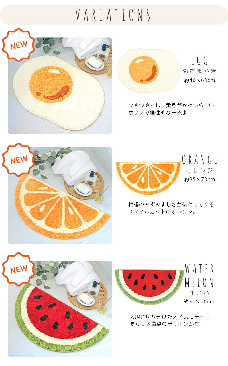 デザイン めだまやき、オレンジ、スイカ、レモン、わたぐも、はっぱ
