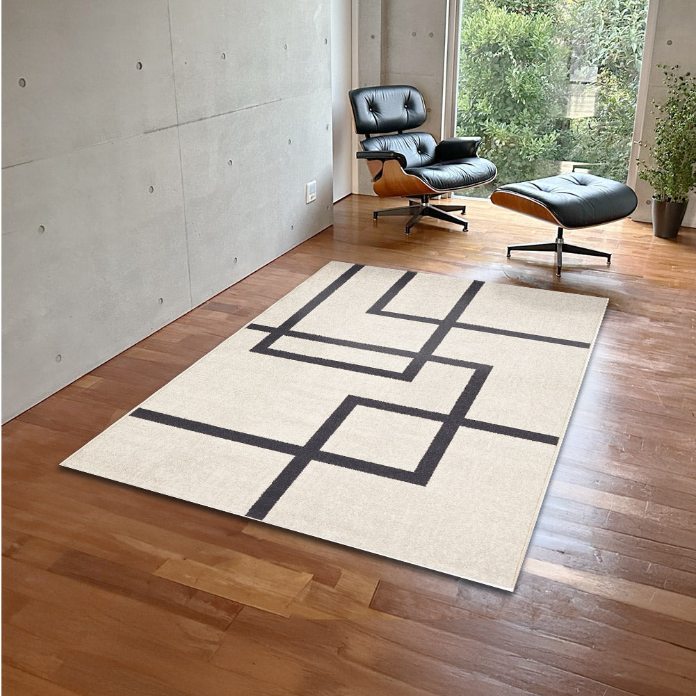 大胆なラインをウィルトン織りで繊細に表現。 モノトーンでお部屋をすっきりと見せてくれます。 複色織りだからこそ、パキっとしたデザインも洗礼された印象に。 ミニマム、ミッドセンチュリー、モダン、インダストリアル系など、幅広いテイストと相性抜群。 シンプルなお部屋のアクセントに、海外ドラマや雑誌で見るような洗練されたインテリアに◎