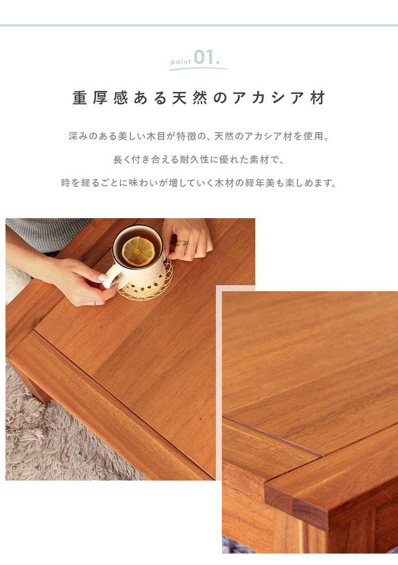 アカシア材のこたつテーブル ベニー 長方形 幅105cm