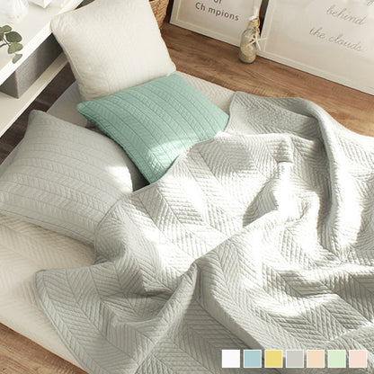 通常のキルトに使用される「綿シート」ではなく、かるくてもっちりした柔らかさの”マイクロわた”を間に挟んだ、ふんわり心地のキルトです。使うほどに肌に馴染むコットン素材は、通気性がよく保温性に優れているので季節を問わず気持ちよくお使いいただけます。