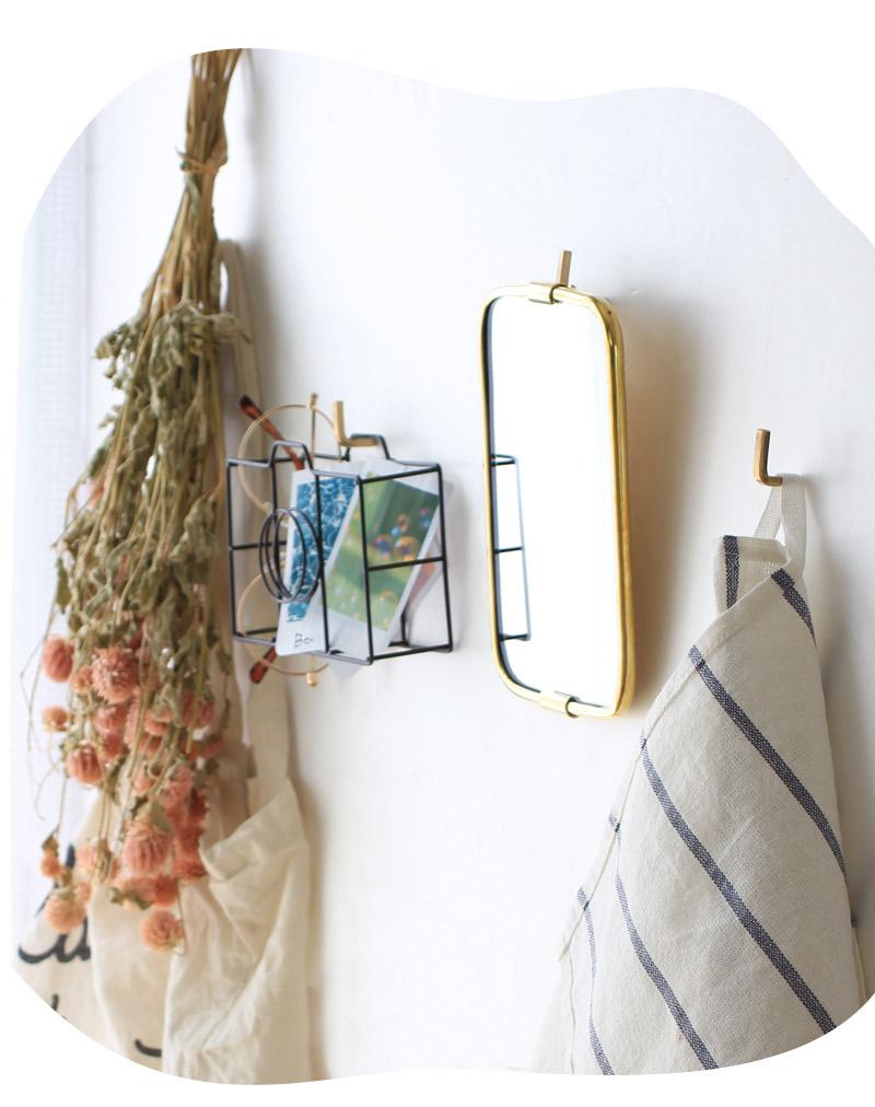 何も無くてさみしい壁にも、ピンをスッとさすだけで写真を飾ったり・カギを吊り下げたり・身だしなみチェックの鏡を掛けてみたりと自分のライフスタイルに合わせて、おしゃれにインテリアが楽しめちゃいます。独特な質感や深みのある光沢が雰囲気を醸し出し、使うほどに味わい深くなる真鍮製フック。麻縄で束ねたドライフラワーを吊り下げたり、ワイヤーライトを引っかけたり、壁をディスプレイ感覚で飾るのはもちろん、玄関先で帽子やストール掛けとして、キッチンや洗面所では布巾やタオル、はたきなどの掃除ツールを吊り下げれば壁面収納としてお使いいただけます。