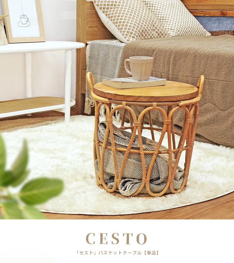 ラタンのバスケットテーブル セスト