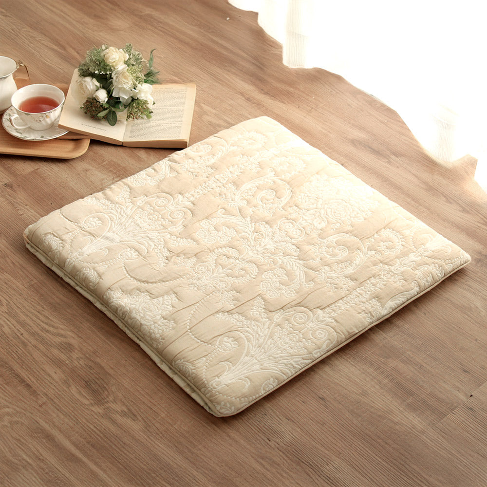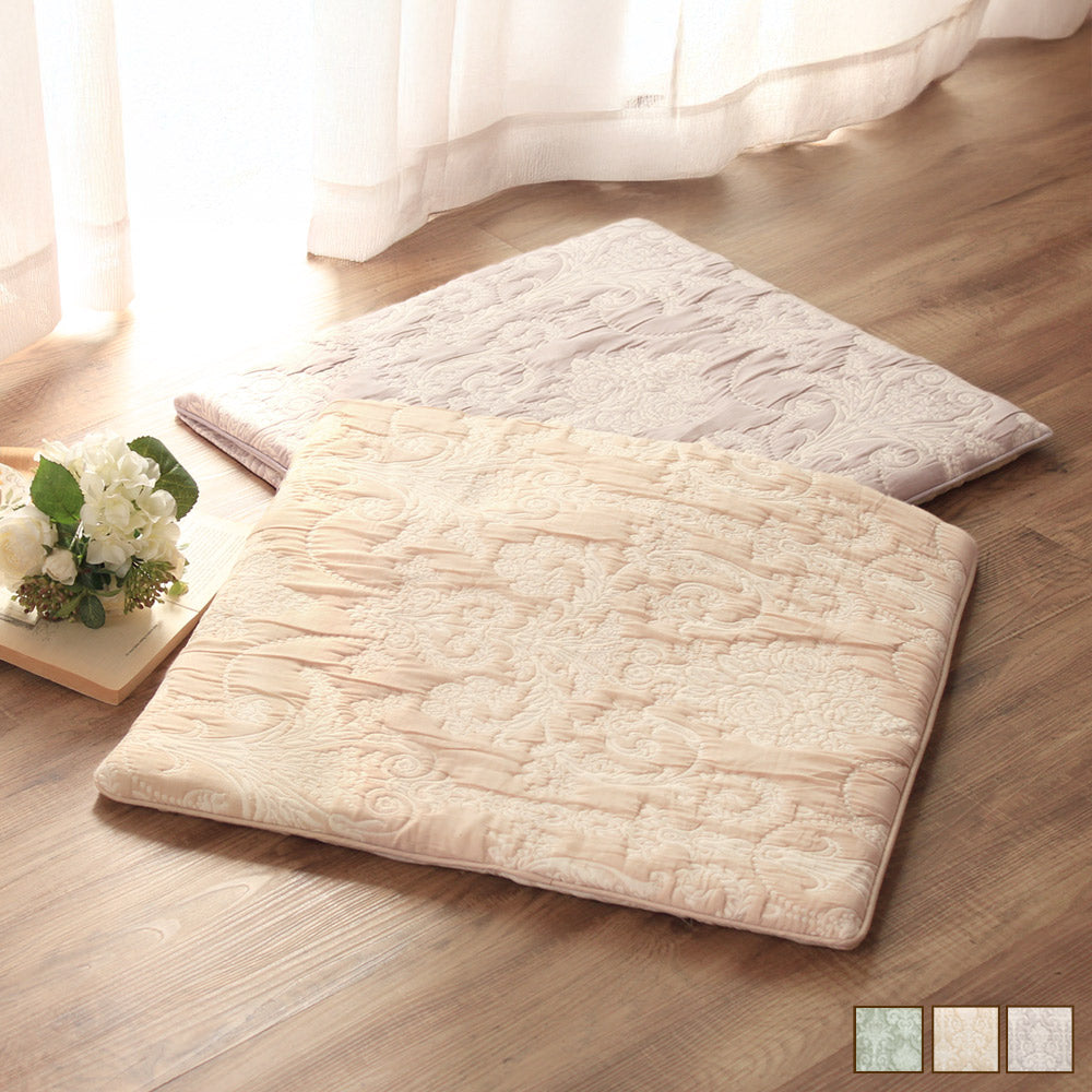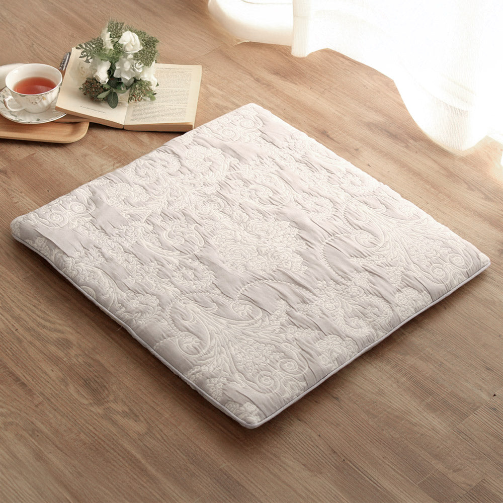 吸水性が高いポリエステルとコットンを使用し、体から出た汗もすぐ吸収していつでも快適・清潔。滑らかな通風ジャガードの手触りとグレーとベージュ・グリーンの上品な3色でいつもの座布団も気軽にイメージチェンジが可能です♪