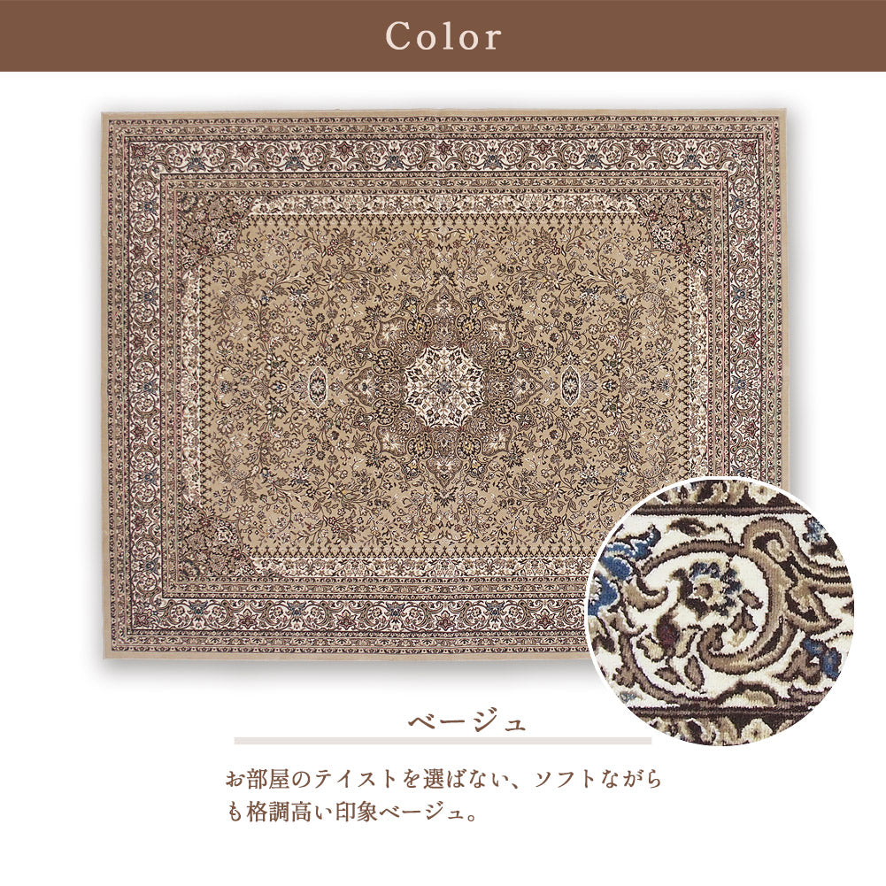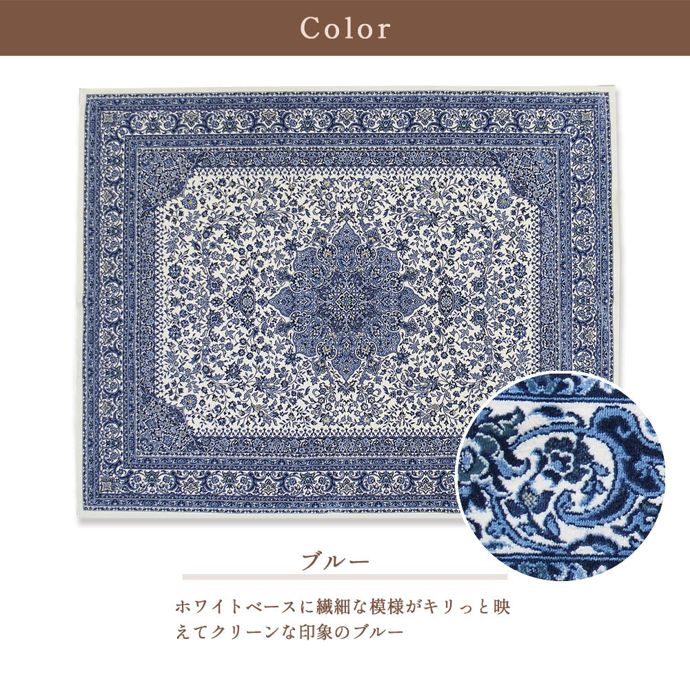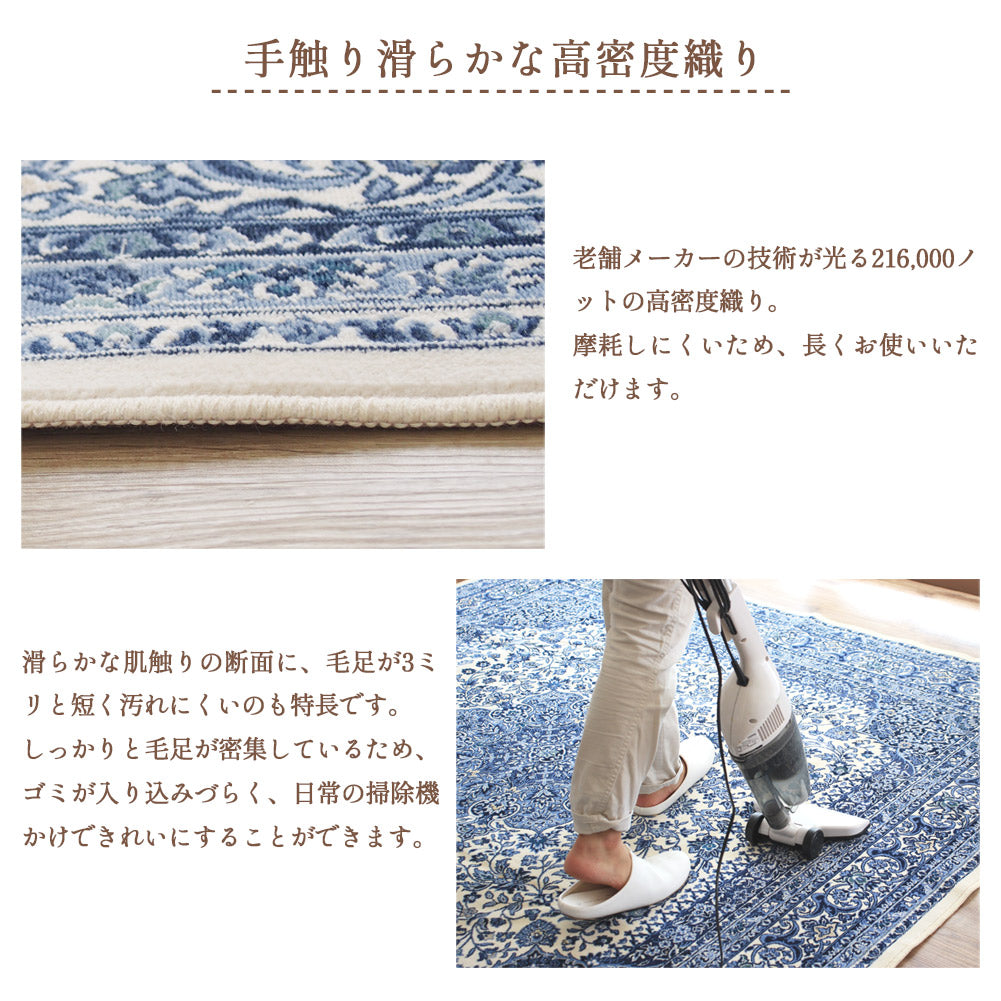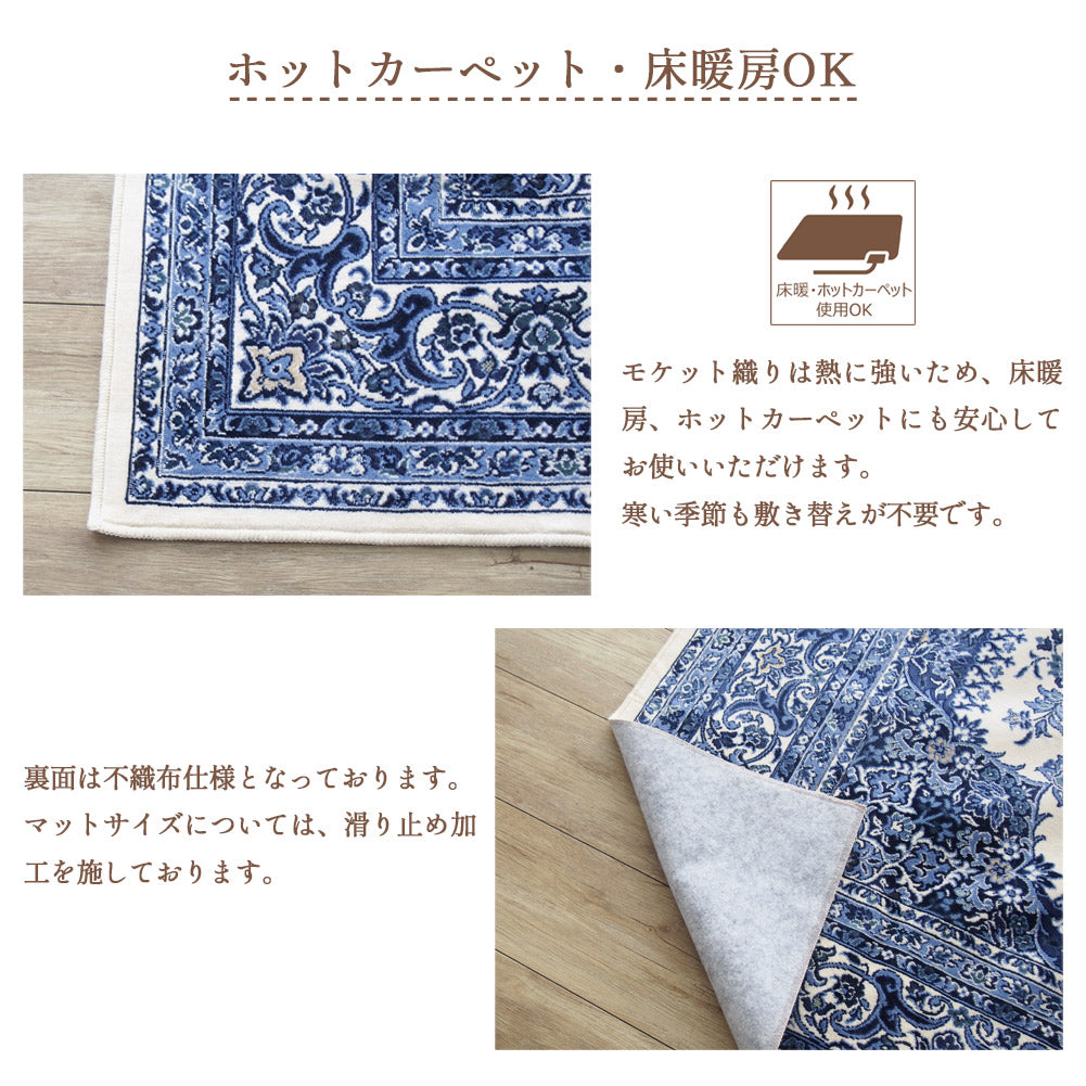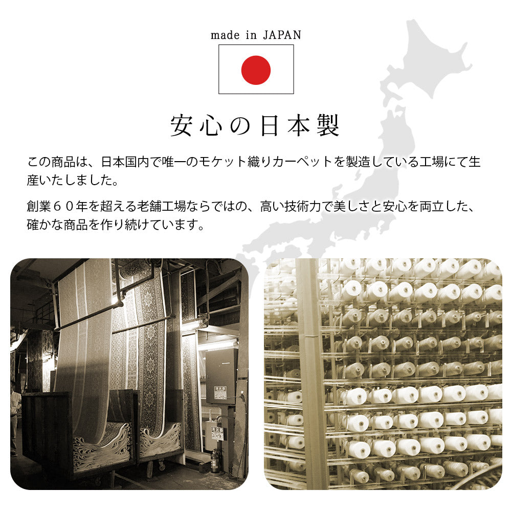 万華鏡のような優美なオリエンタル柄が印象的なマットです。 現在では大変少なくなった、国産モケット織りです。 216,000ノットと高密度のため、美しい柄表現はもちろんのこと、耐久性も抜群です。 ラグを長く大事にお使いになりたい方におススメです。