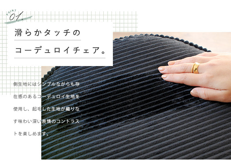 シンプルながらも存在感のあるコーデュロイ生地を使用し、起毛した生地が織りなす味わい深い表情のコントラストを楽しめます。