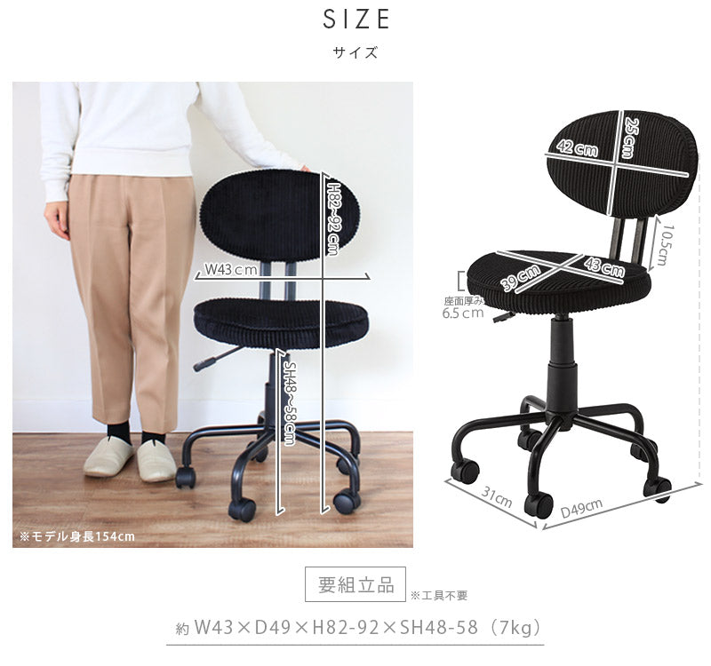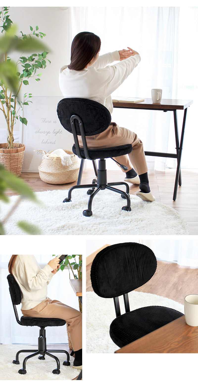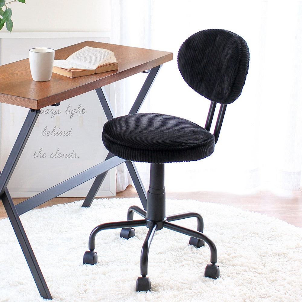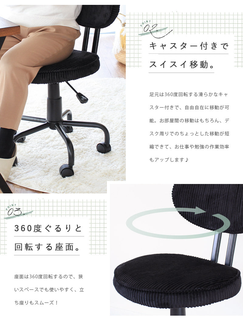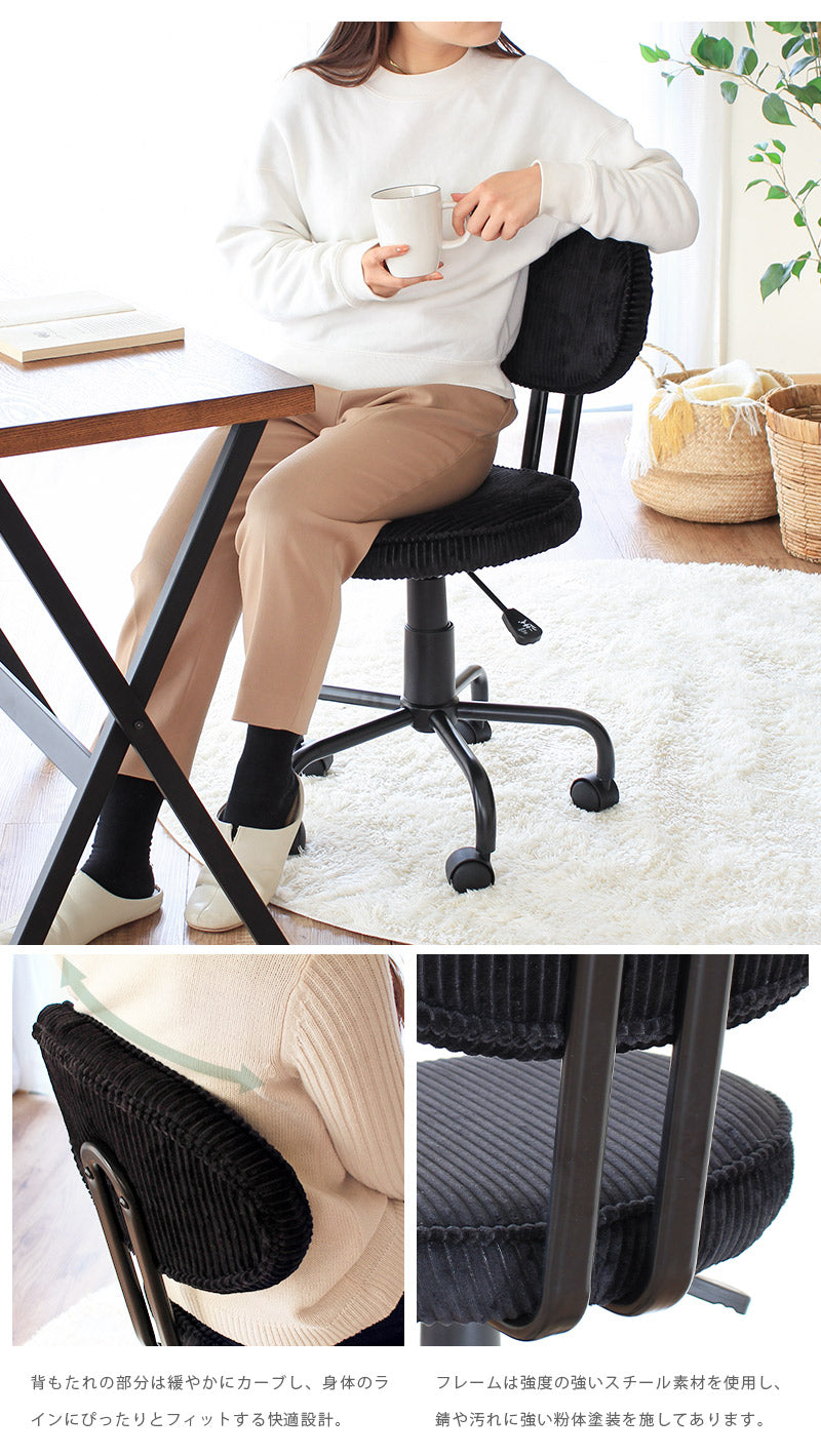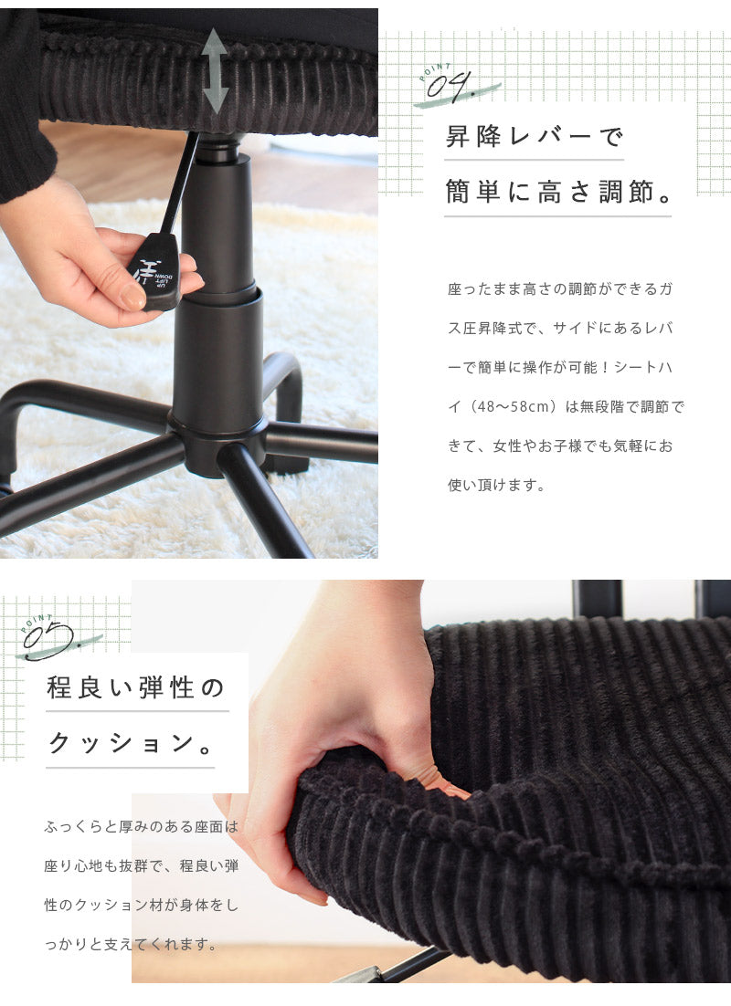 デスクワークに嬉しい機能が詰まった、コーデュロイ素材のお洒落チェア