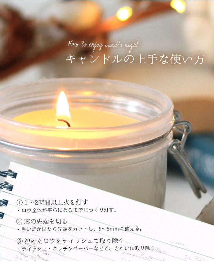 一般的なパラフィン製キャンドルは体に有害な粒子を含むススが出ますが、パーム(やし)ワックスを原料としたキャンドルはススが出にくく安心してお使いして頂けます。また低温でゆっくり燃えるので、約20時間と長い時間火持ちします。リラックス効果があるキャンドルの光で素敵なキャンドルナイトをお楽しみください。