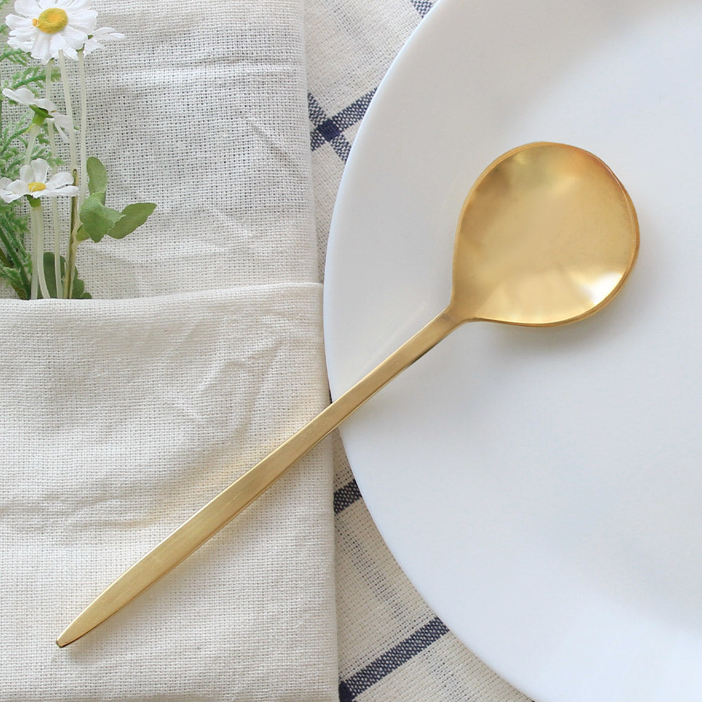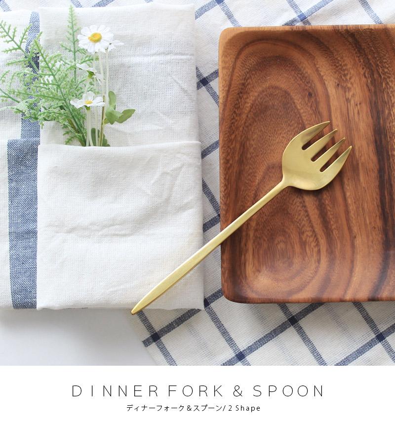 ステンレスではなくアンティークのような、まったりした金色が特徴の真鍮を使用したフォークとスプーン。ステンレスにはない真鍮の「暖かみ」と「ぬくもり」はお食事の時間をより華やかにします♪