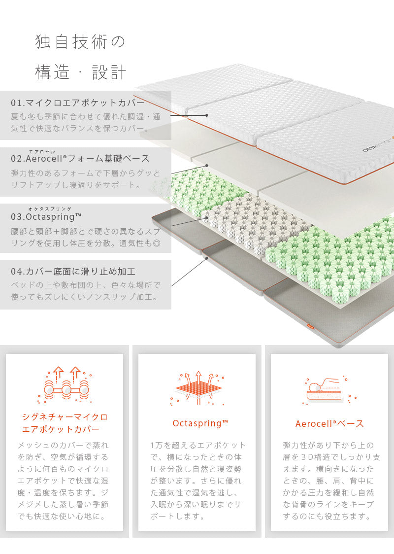 イタリア発!老舗寝具メーカーが誇る独自技術の構造&設計。収納もラクチンな三つ折りマットレス