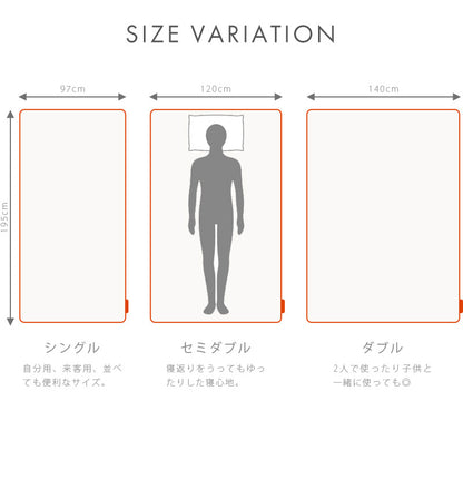 | サイズ | シングル:約97×195cm セミダブル:約120×195cm ダブル:約140×195cm |