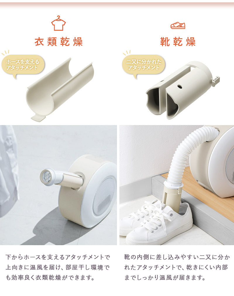 ふとん乾燥機&セラミックヒーター ドライヒート 衣類・靴乾燥用アタッチメント付き