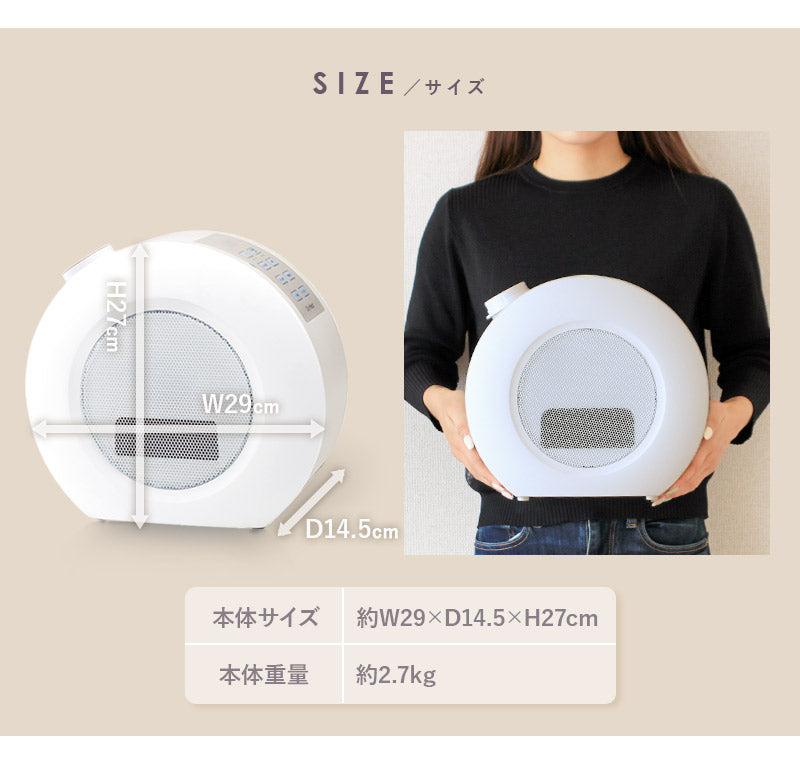 | サイズ | 本体サイズ:約W29×D14.5×H27cm 本体重量:約2.7kg コード長:約1.8m |
