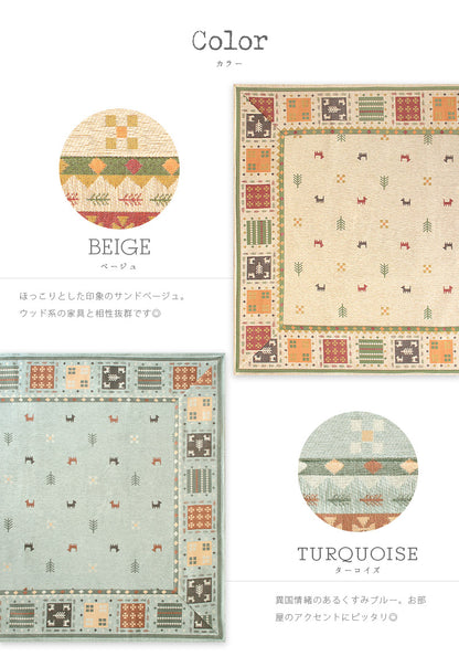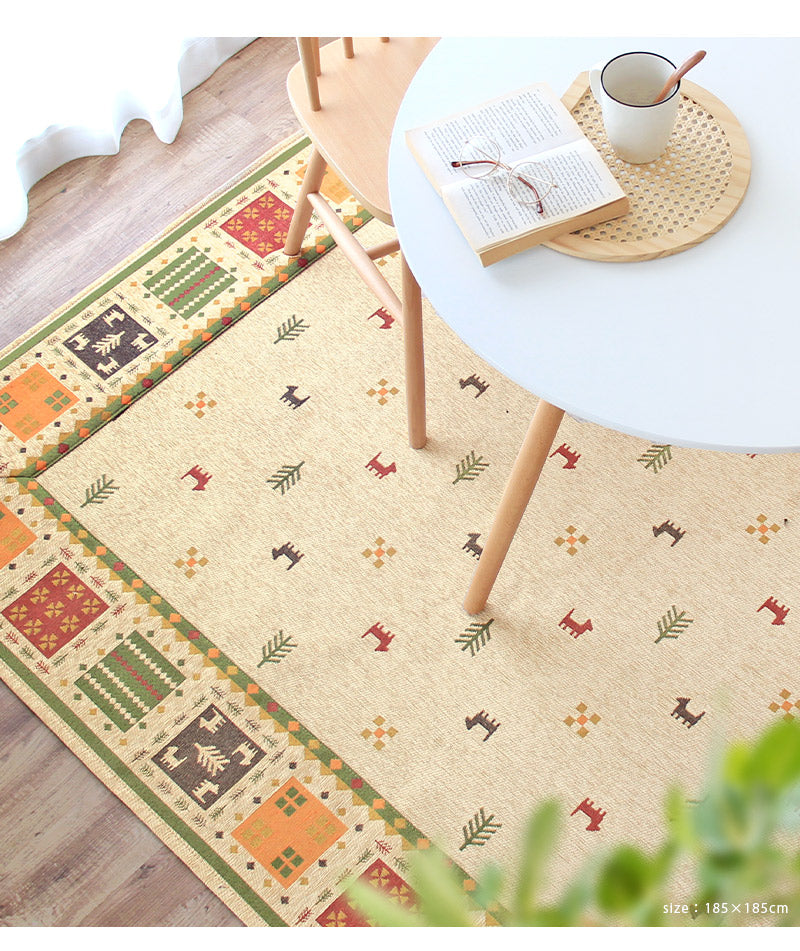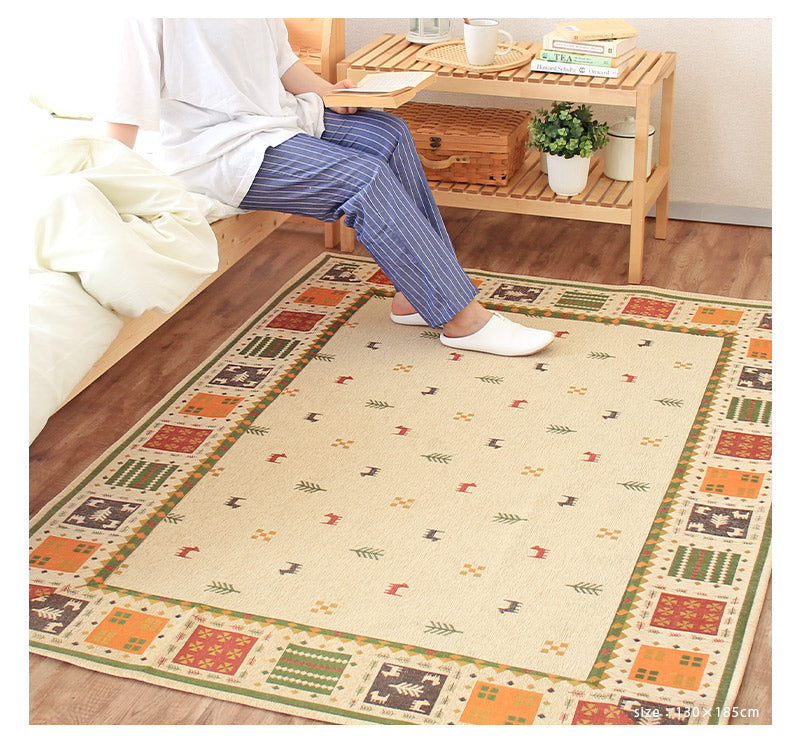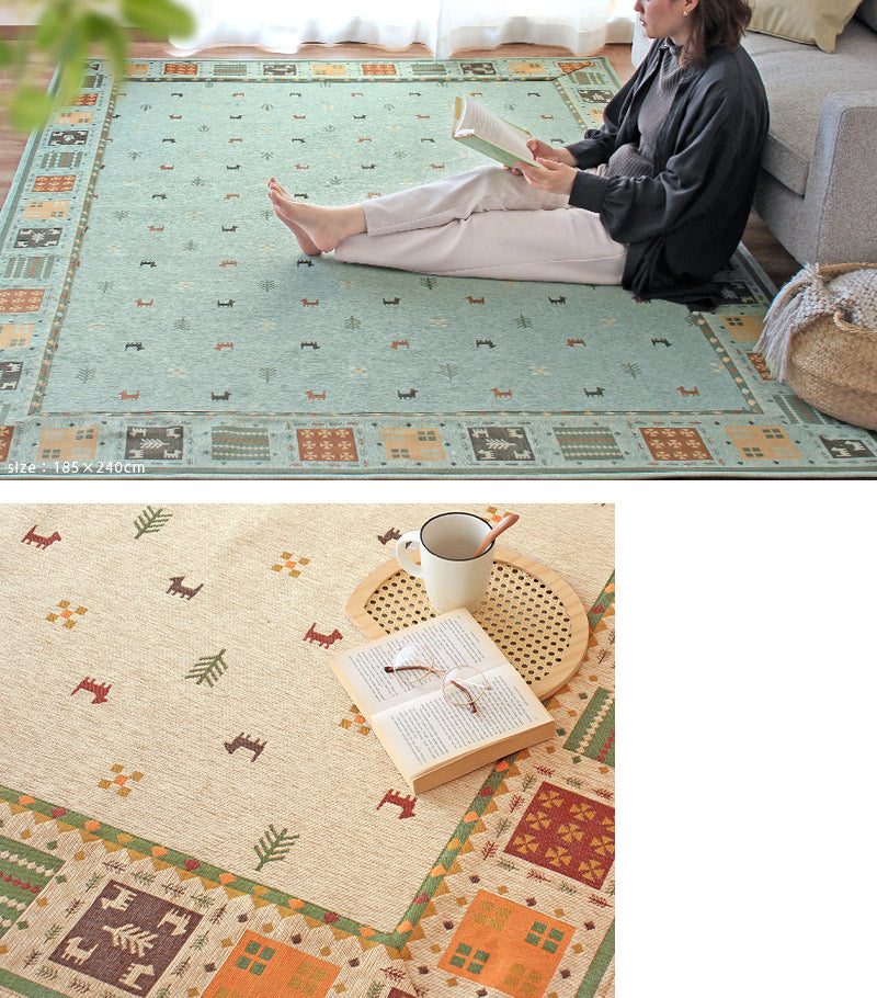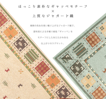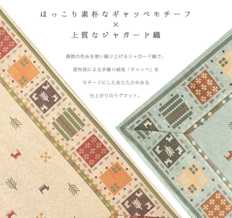 ほっこり素朴なギャッベモチーフのジャガード織ラグマット