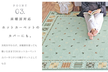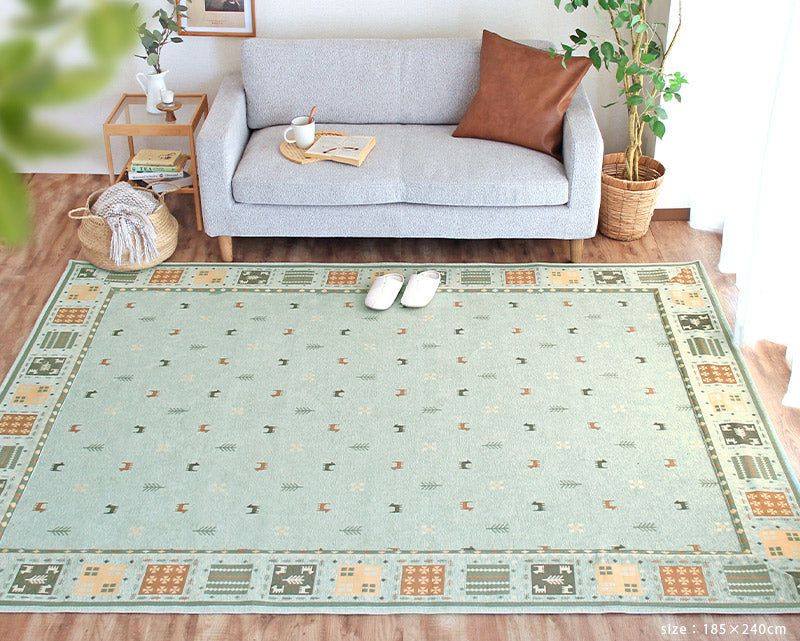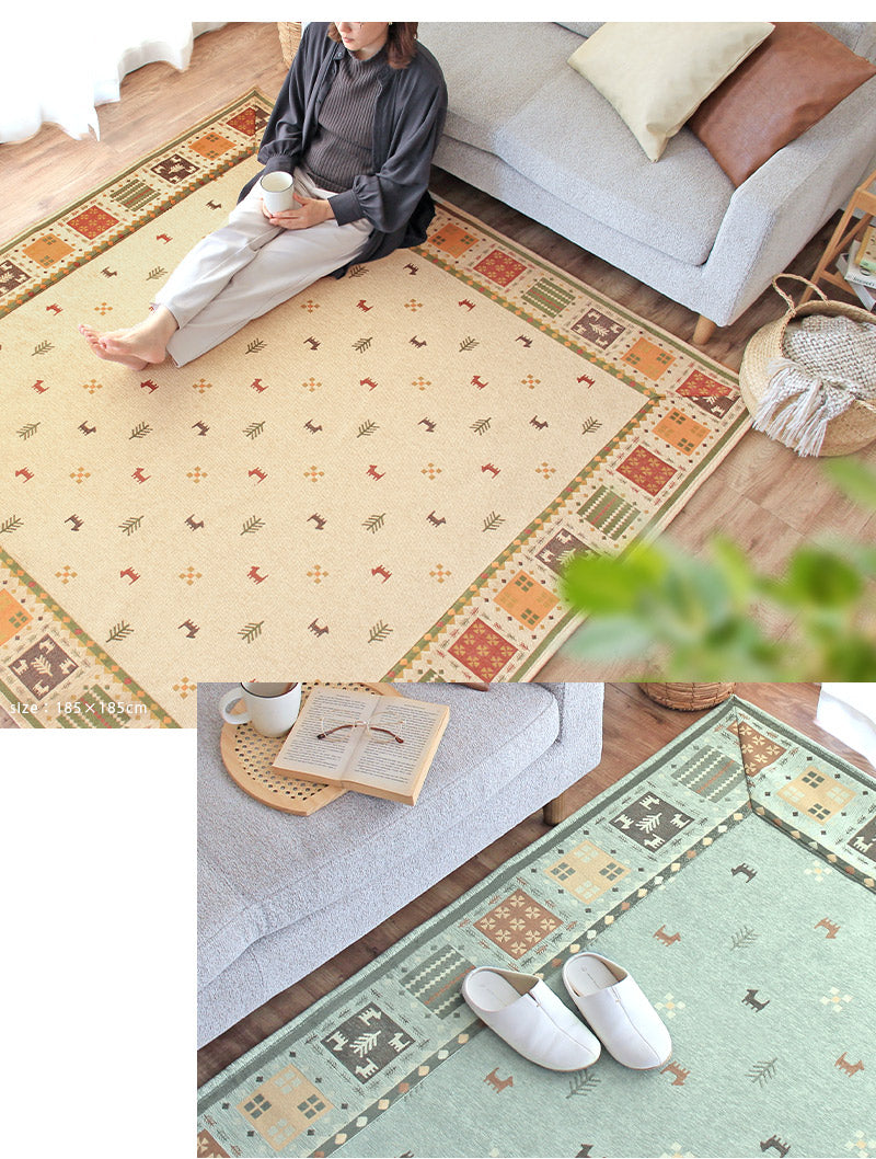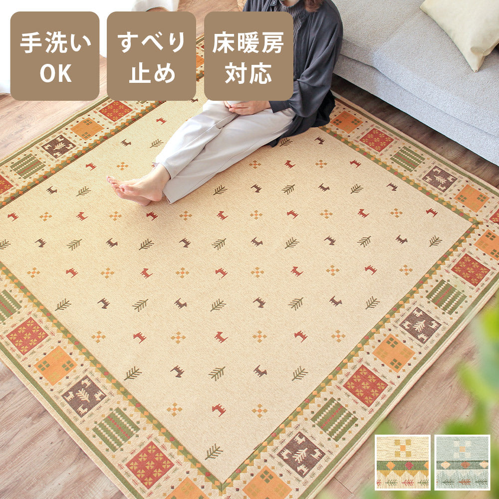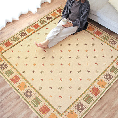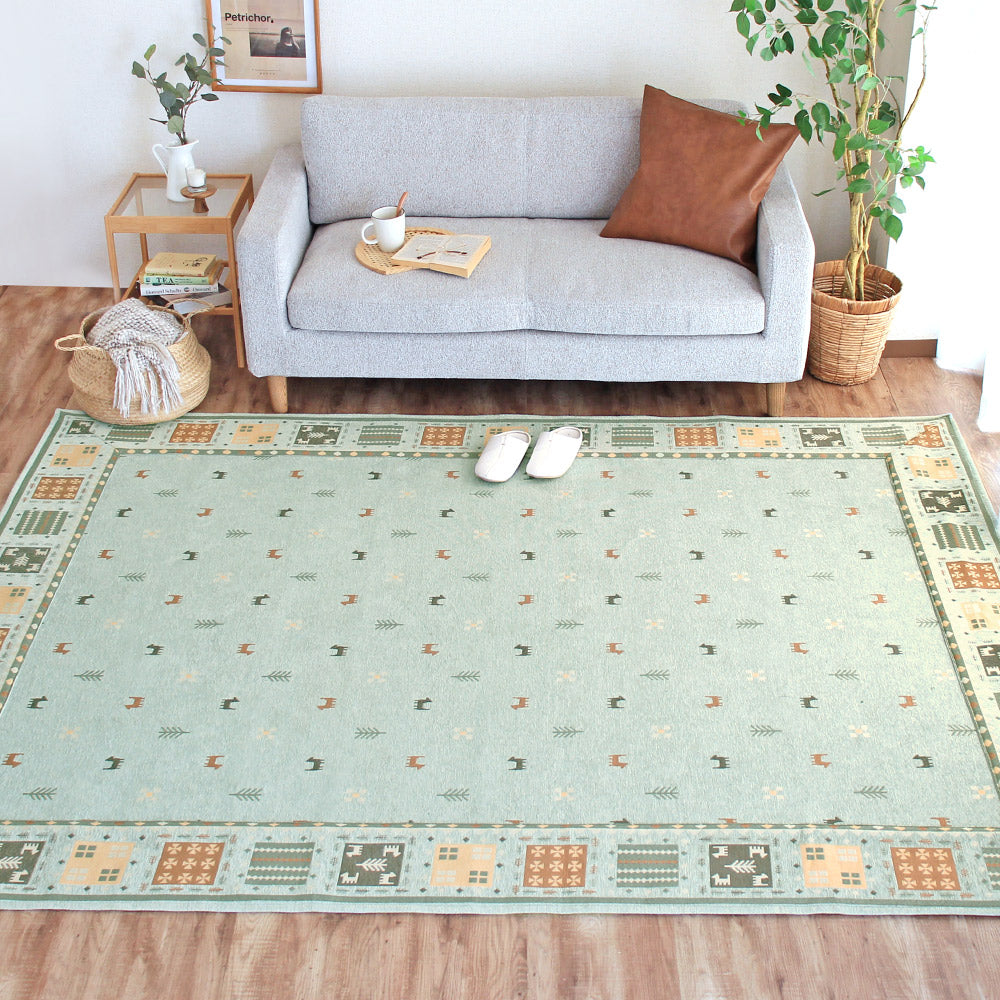 ほっこり素朴なギャッベモチーフのジャガード織ラグマット