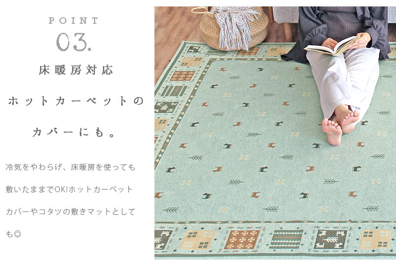 床暖房対応、ホットカーペットカバーとして、こたつの敷きマットとしてお使いいただけます。