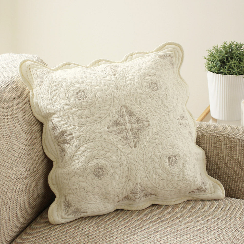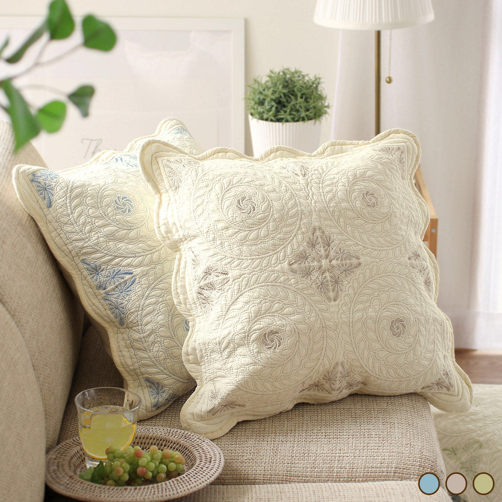 瑞々しく美しいオーナメント刺繍のクッションカバー
