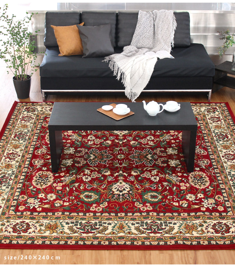 ウィルトン織りの高品質ラグ。華やかで重厚感があるオリエンタル柄。
