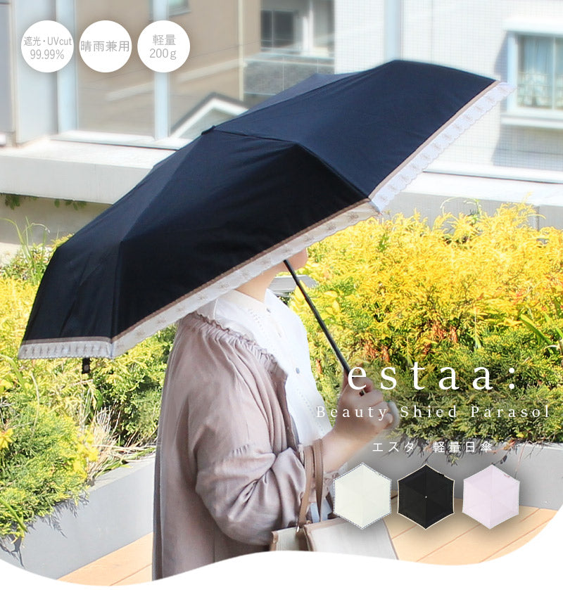 estaa(エスタ)晴雨兼用 折りたたみ日傘 オーガンジーマーガレット 遮光率99.99%