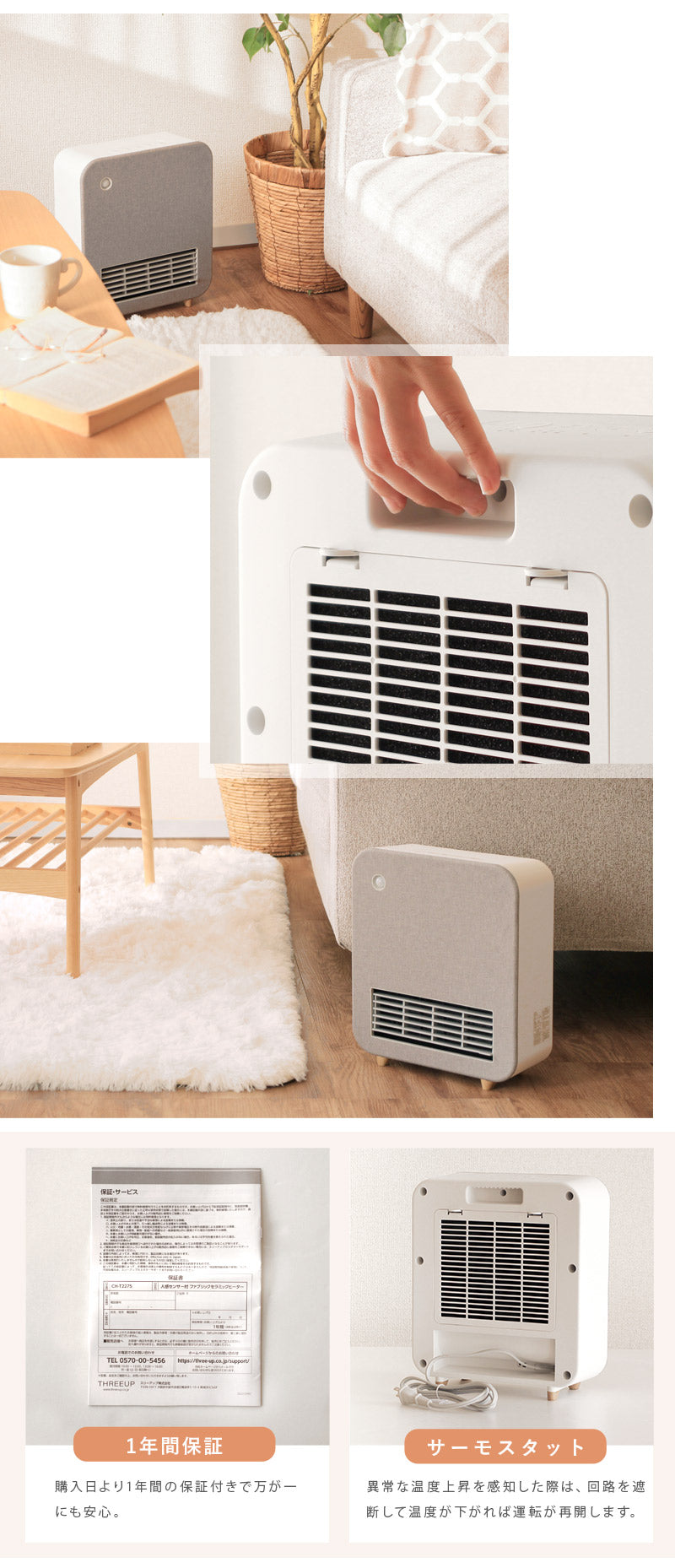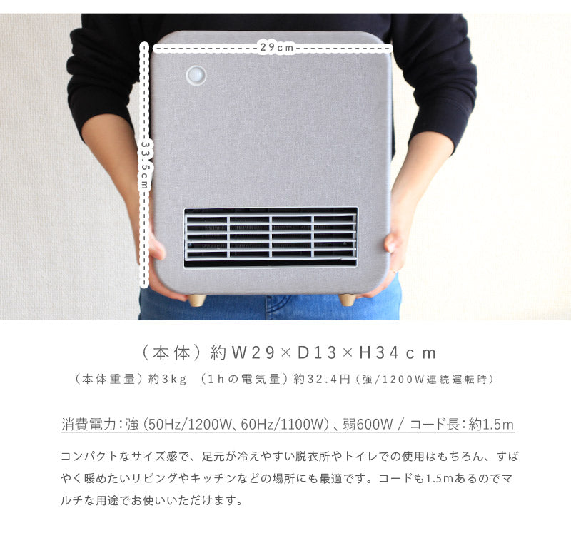 | 備考 | ■吹き出し口ワイド温風 ■効率的に温める人感センサー ■600W/1200Wの2段階温風切替 ■1・2・4H間隔でのオフタイマー機能 ■転倒時自動OFFスイッチ&サーモスタット機能付き |