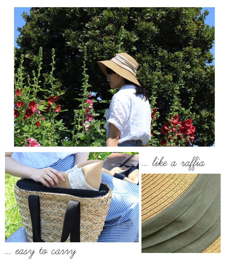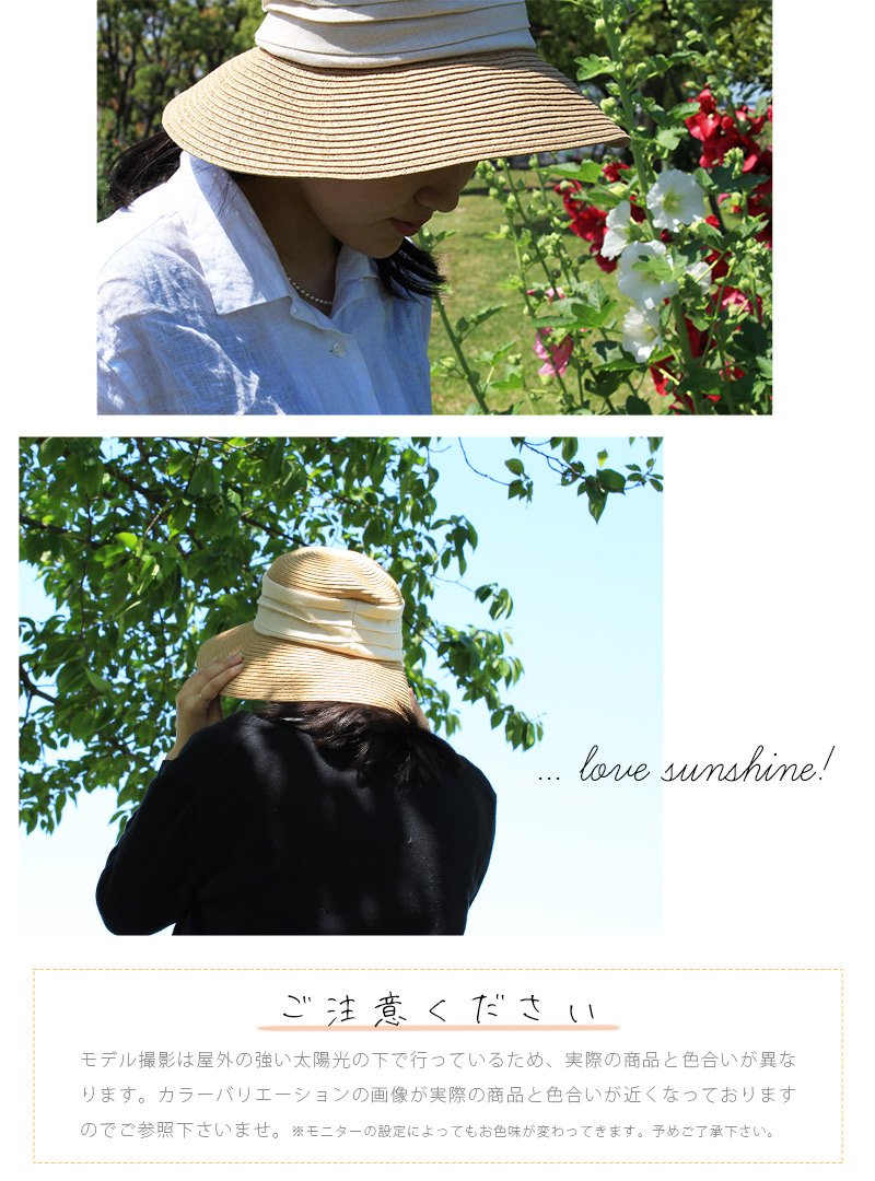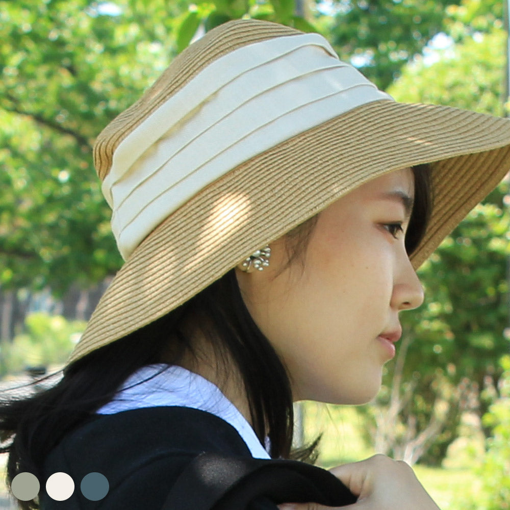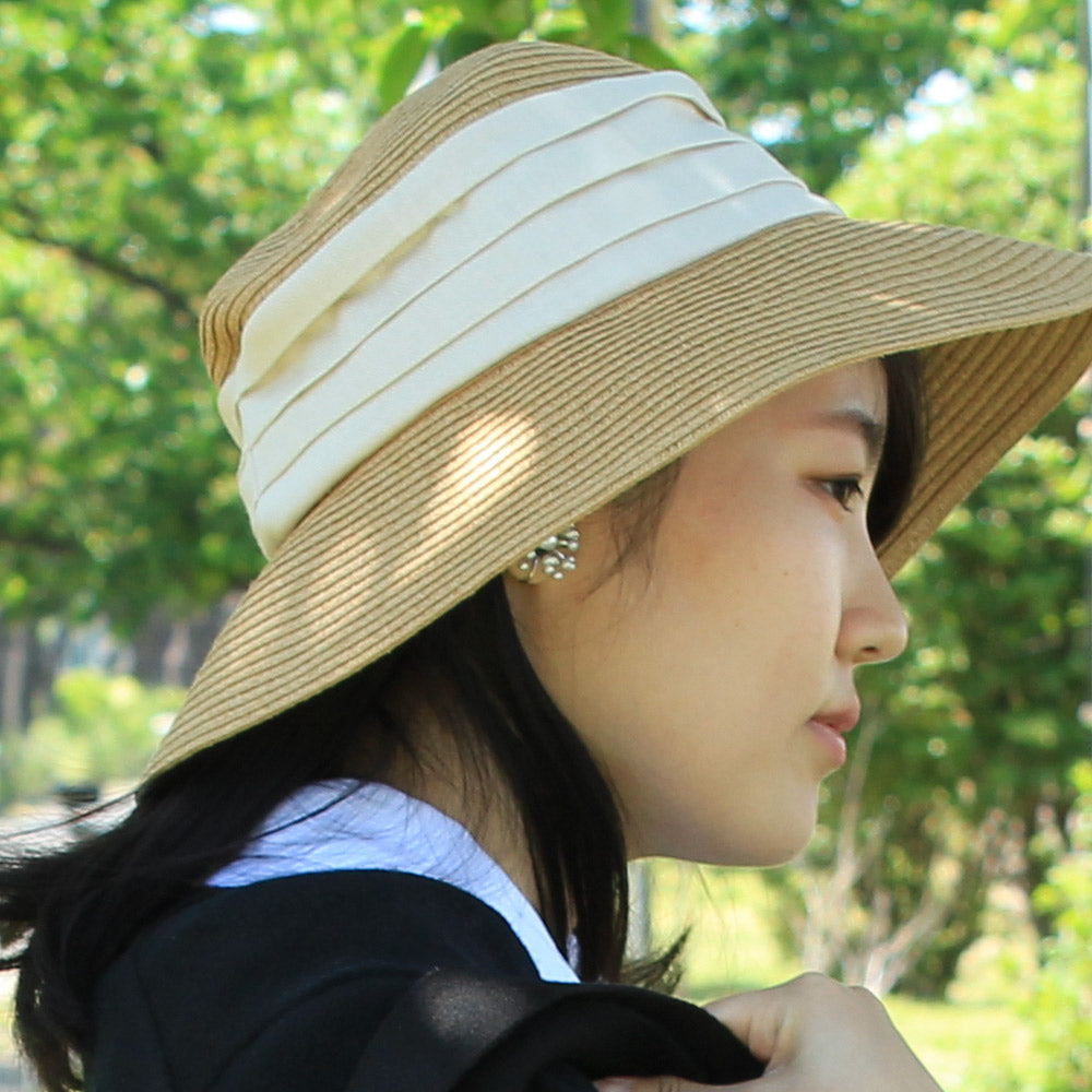 布帛とペーパーの組み合わせが目を引く、女性らしさを引き立てるデザインの帽子が届きました。さわやかな快晴の日も眩しさや紫外線を気にせず出かけられます。服装を選ばないシンプルでナチュラルな雰囲気が魅力的な一品です。-2cm程度の調節ができるので風の強い日など、しっかりかぶりたい時に便利です。マジックテープ式で調節が簡単♪