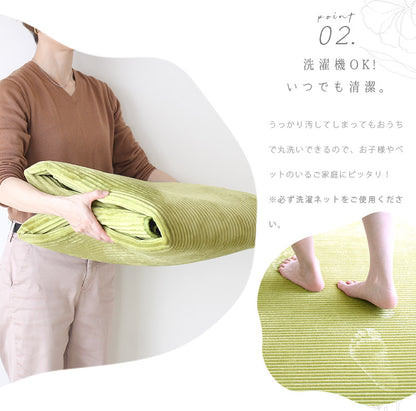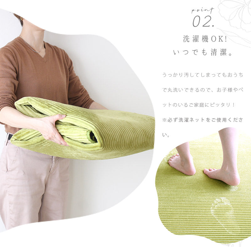 フランネルの柔らかな肌触りに一日の疲れを忘れさせてくれるラグ。ホッとする心地よさに加えウレタンフォームを中材に使用しているため、クッション性があり足に優しくフィットしてくれます。毎日使うものだから、汚れが心配ですが洗濯機可能ですのでいつでも清潔に保てます。また、オールシーズン使える便利なラグです。