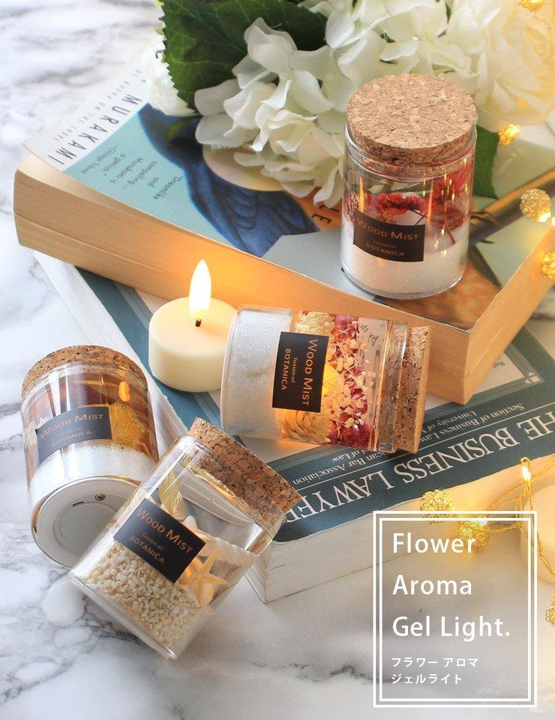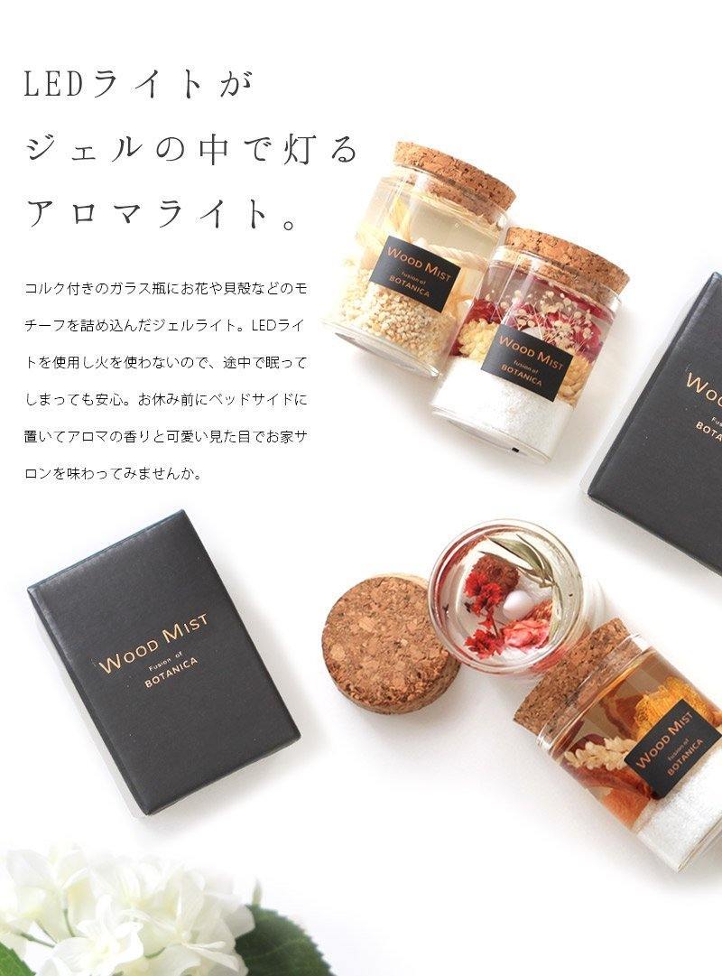 コルク付きのガラス瓶にお花や貝殻などのモチーフを詰め込んだジェルライト。LEDライトを使用し火を使わないので、途中で眠ってしまっても安心。また専用ケースに入ってでのお届けなので母の日などはもちろん、お友達へのプレゼントにもぴったりなアイテムです♪お休み前にベッドサイドに置いてアロマの香りと可愛い見た目でお家サロンを味わってみませんか。