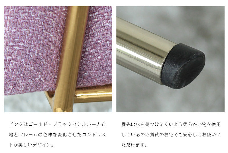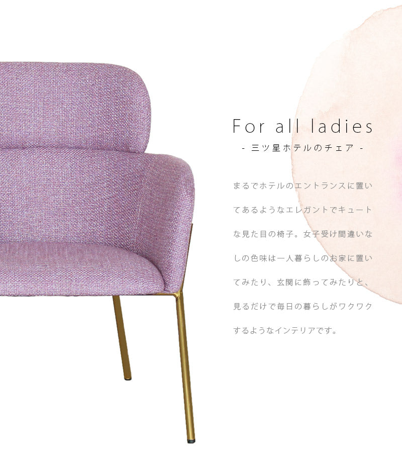 まるでホテルのエントランスに置いてあるようなエレガントでキュートな見た目の椅子。女子受け間違いなしの色味は一人暮らしのお家に置いてみたり、玄関に飾ってみたり見るだけで毎日の暮らしがわくわくするようなインテリアです。