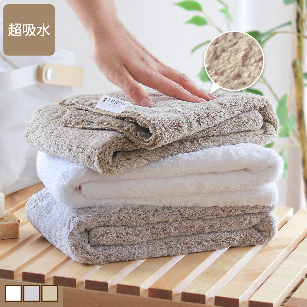 ふわふわの柔らかな生地をそっと肌にあてるだけで吸水してくれるので、敏感肌の方でも安心のフェイスタオル。マイクロファイバーを贅沢に使い、両面共に毛足の長い約7mmの肉厚パイルがたっぷり水分を吸収してくれます。品質にこだわり高密度に織り上げた生地で毎日使ってもへたりにくく、ふわっふわの贅沢な使い心地が長続き♪パッケージはナチュラルな雰囲気が可愛いrugooオリジナルのデザインで、大切な人へのギフトにもオススメです。