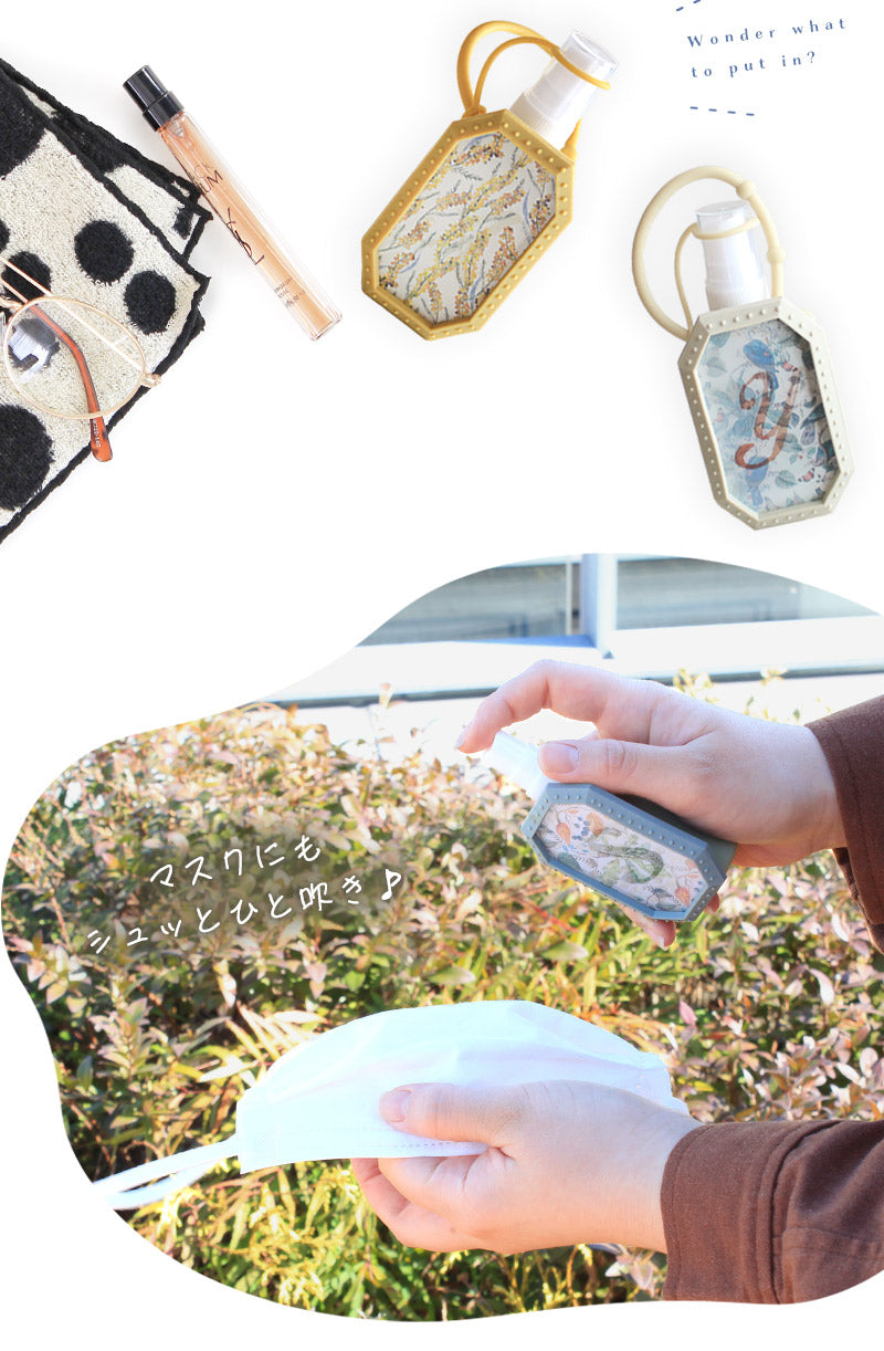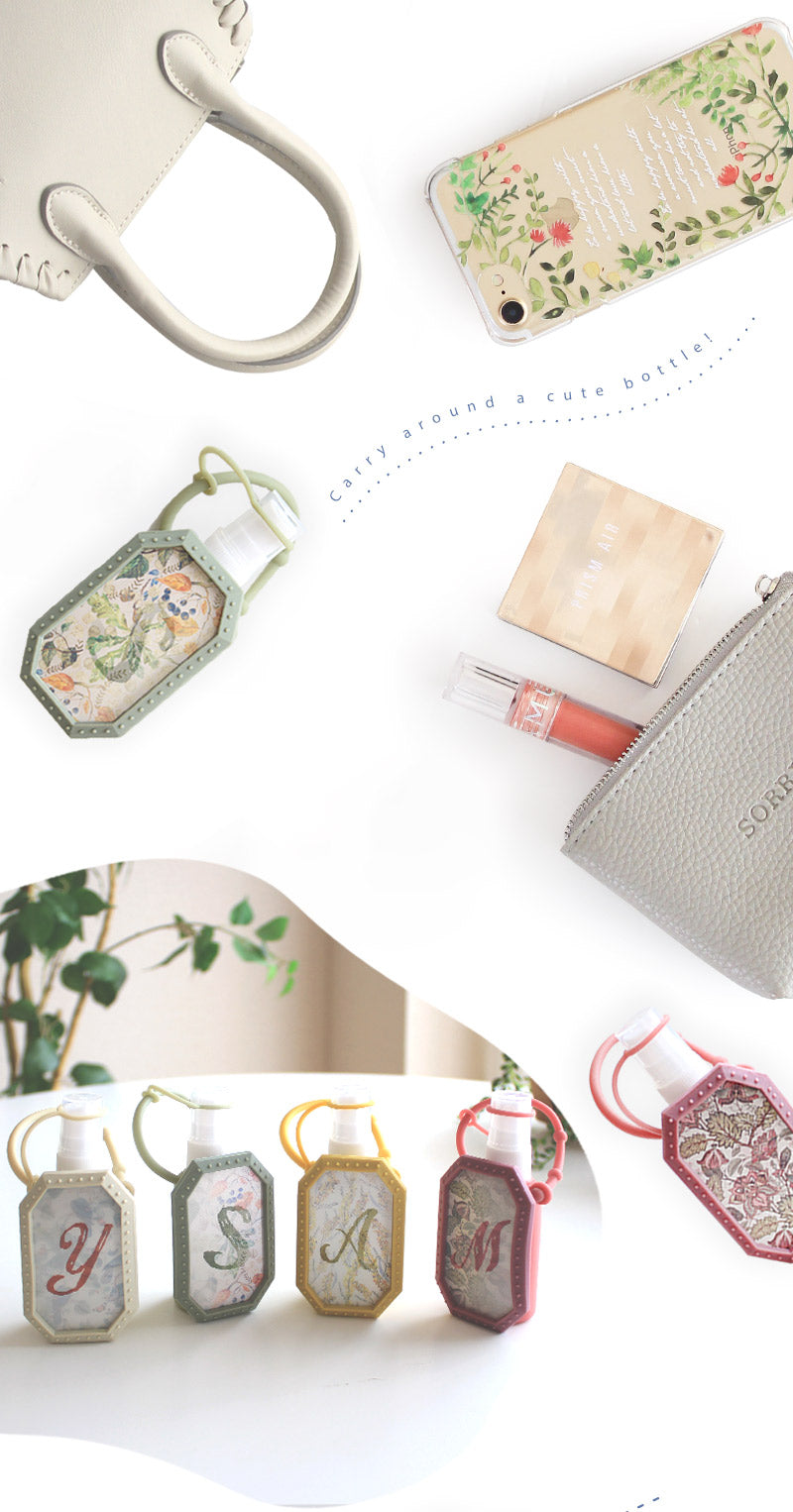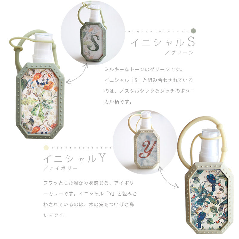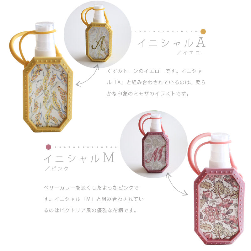 アルファベットモチーフにした、大人かわいいスプレーボトルが新登場!通勤バッグやお出かけ時のリュックなどに下げてデイリーに持ち運べます。アルコール消毒液を入れれば外出時でもこまめな除菌ができて、手の消毒はもちろん、マスクや外食時のテーブルなど、いつでもシュッと吹きかけて除菌できちゃう♪