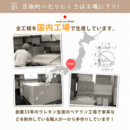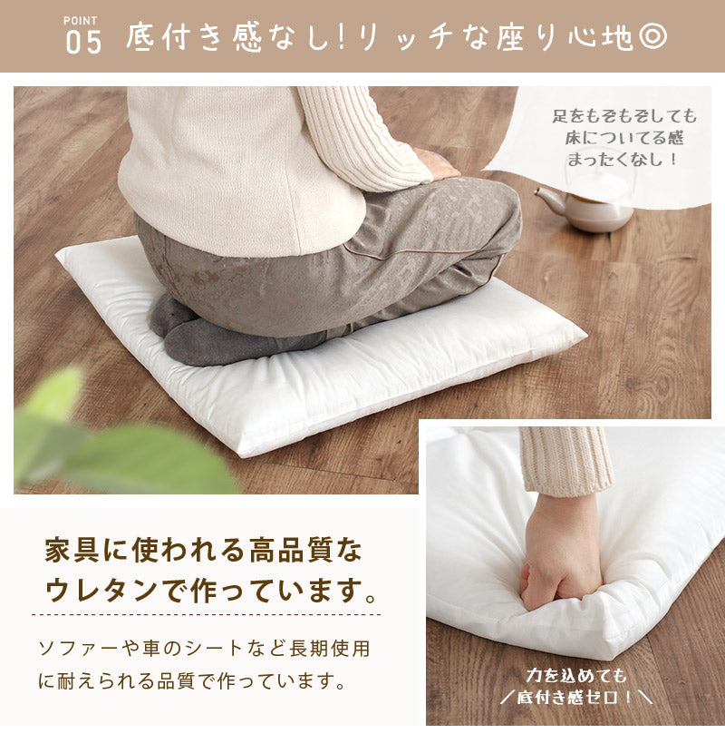 底付き感がなく立ち上がりやすい高反発ウレタン。高品質で耐久性もバツグンです。