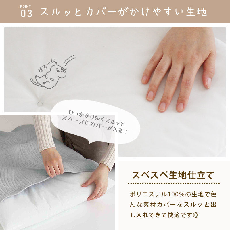 カバーのかけ外しが簡単な側生地を使用。カバーが汚れたらサッと外せるので面倒さを軽減してくれます。
