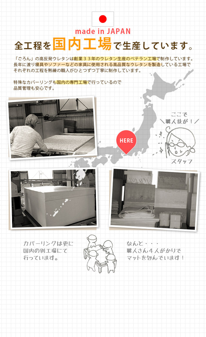 高反発ウレタンマット「ごろん」 (ラグ用下敷きマット 厚み3cm) | rugooオリジナル