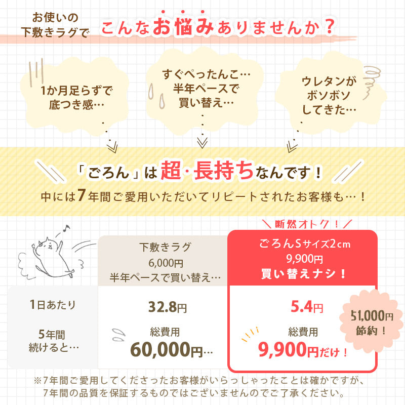 【らぐ一オリジナル】ラグ用下敷き高反発マット「ごろん」