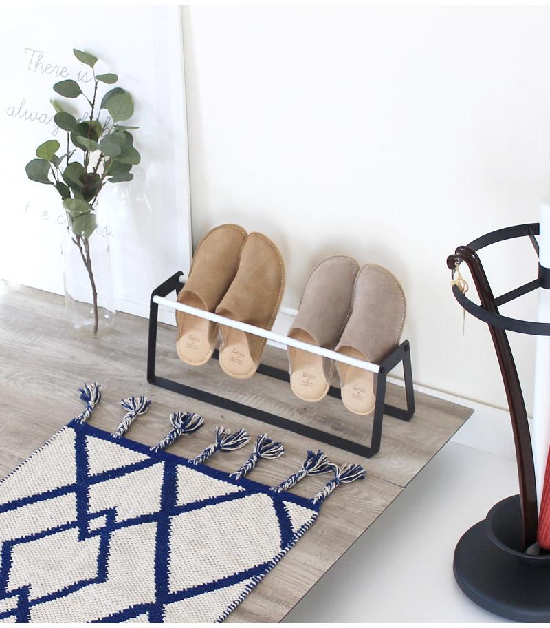 オールシーズンを通じて欠かせないスリッパ。自分用とお客様用を置いておきたくても玄関の邪魔になったり、脱ぎっぱなしでちらかってしまいがちなアイテムですよね。そこでおススメなのが、シンプルなアイアン風デザインのスリッパラック。カジュアルな見た目なのでエントランスの雰囲気を壊すことなくオシャレにスリッパを収納できちゃいます。ホコリがたまりにくいフレームデザインなのでワイパーや掃除機を掛けるだけでOK!いちいちしゃがんでスリッパをどかす手間が省けます◎