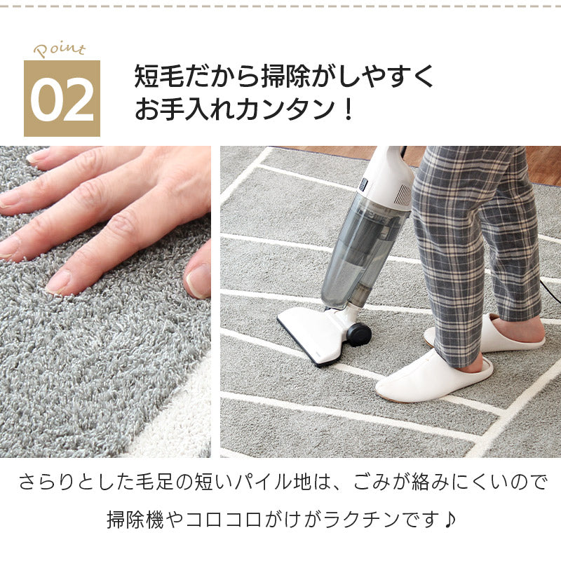 毛足が短いので食べこぼしや髪・ホコリなどのゴミが絡まず掃除機やコロコロがけが楽チンです♪