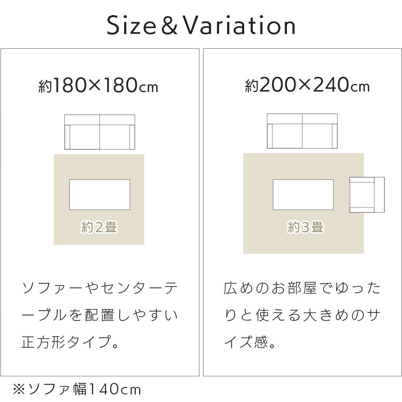 | サイズ | 約180×180cm(2畳) / 約200×240cm(3畳) |