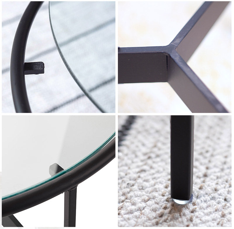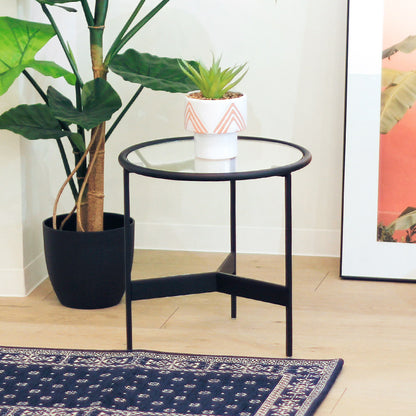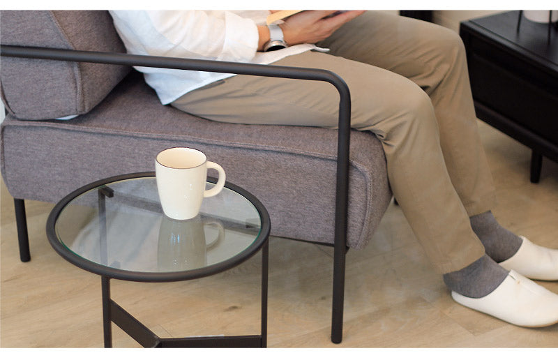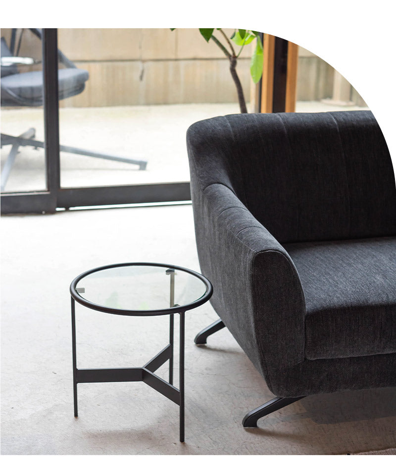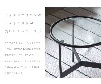 透き通るガラス天板×ブラックアイアンフレームのモダンなミニテーブル