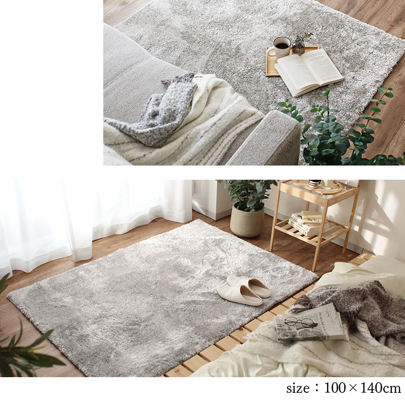 煌めく艶糸。心地よいふわもこ感触のシャギーラグ。
