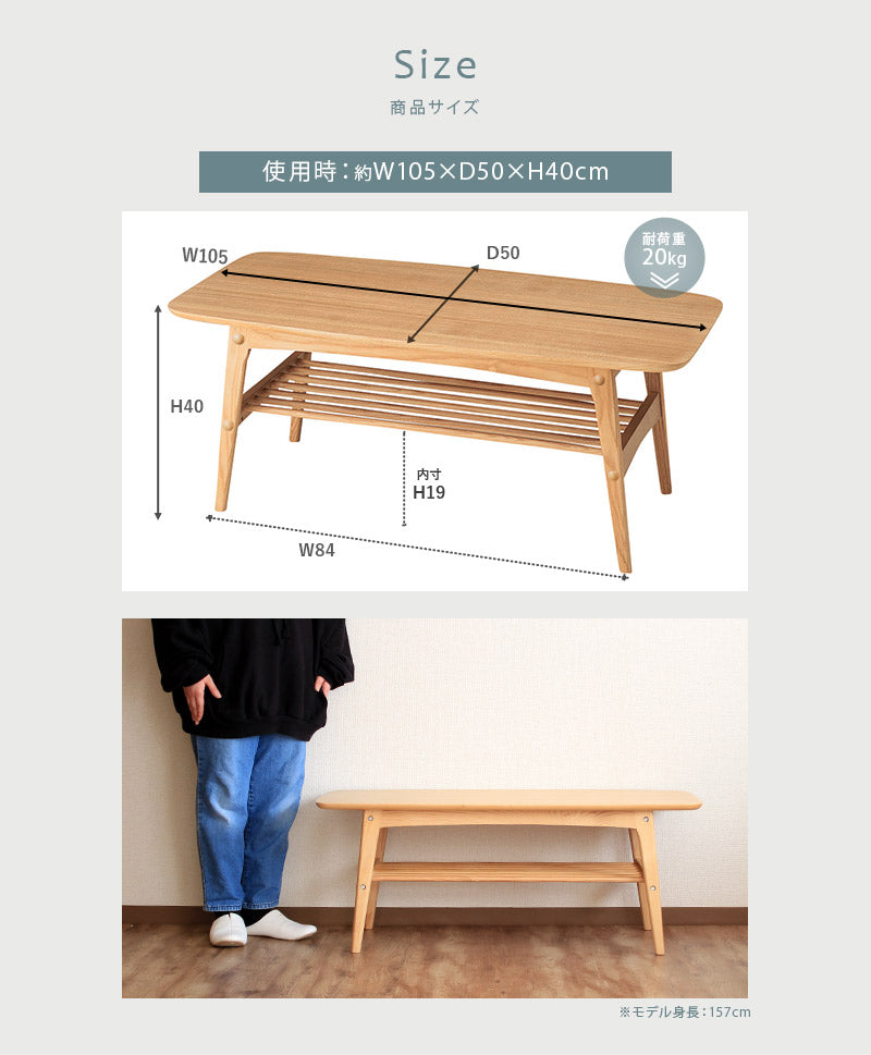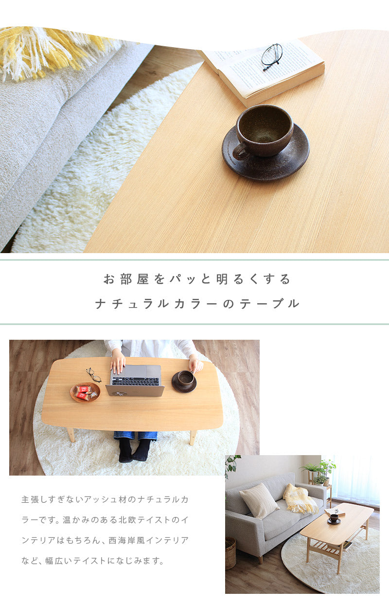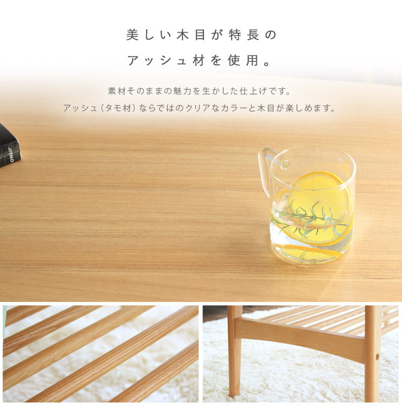 美しい木目が特長のアッシュ材を使用した下棚付きのセンターテーブル