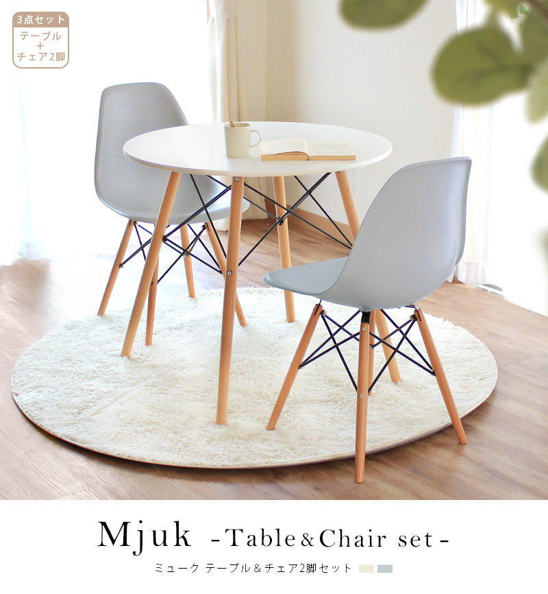 ラウンドテーブル&ダイニングチェア2脚セット ミューク