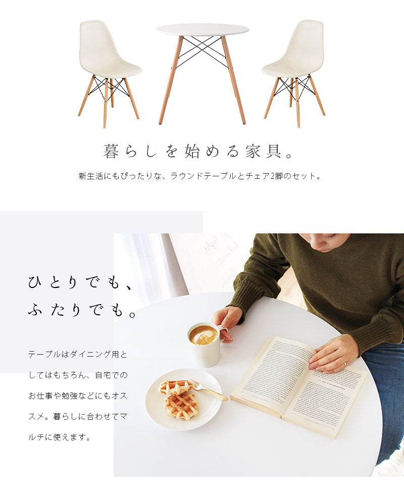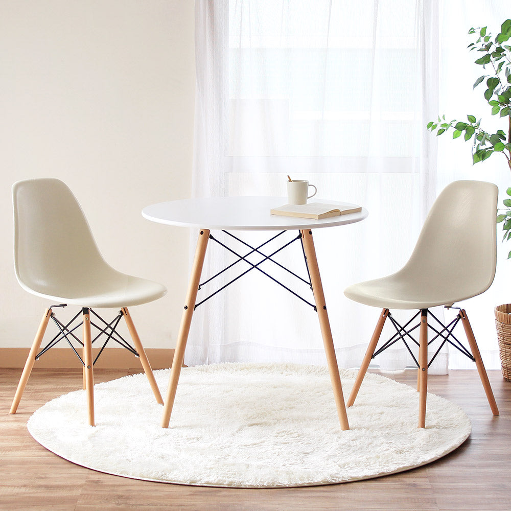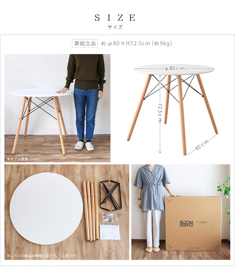 テーブルは省スペースで使いやすい直径80cmの天板で、ダイニング用としてはもちろん、自宅でのお仕事や勉強用にもオススメの万能サイズです。