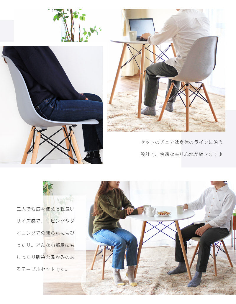 | 梱包サイズ | テーブル:約W86.5×D10×H86.5cm チェア:約W48.5×D47×H57.5cm |
