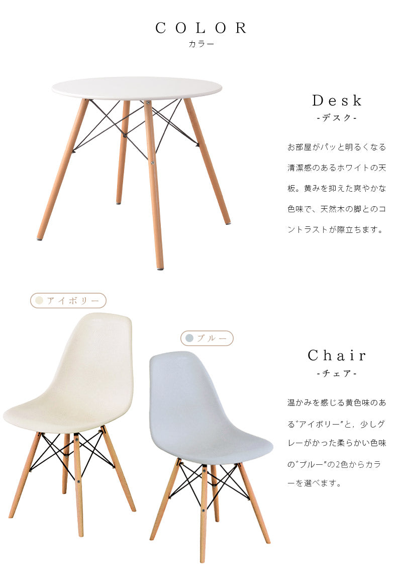 | 色 | テーブル:ホワイト チェア:アイボリー、ブルー |