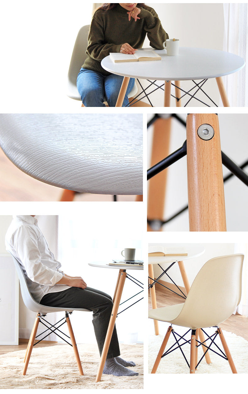 | 素材(品質) | テーブル:繊維板、天然木(ビーチ)ラッカー塗装、スチール(粉体塗装) チェア:ABS樹脂、天然木、スチール(粉体塗装) |