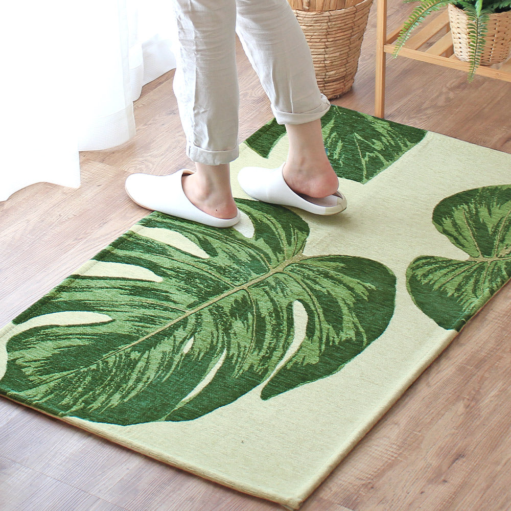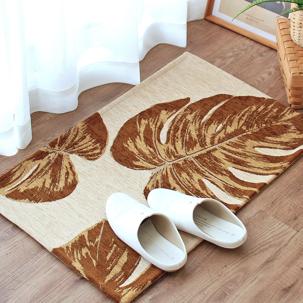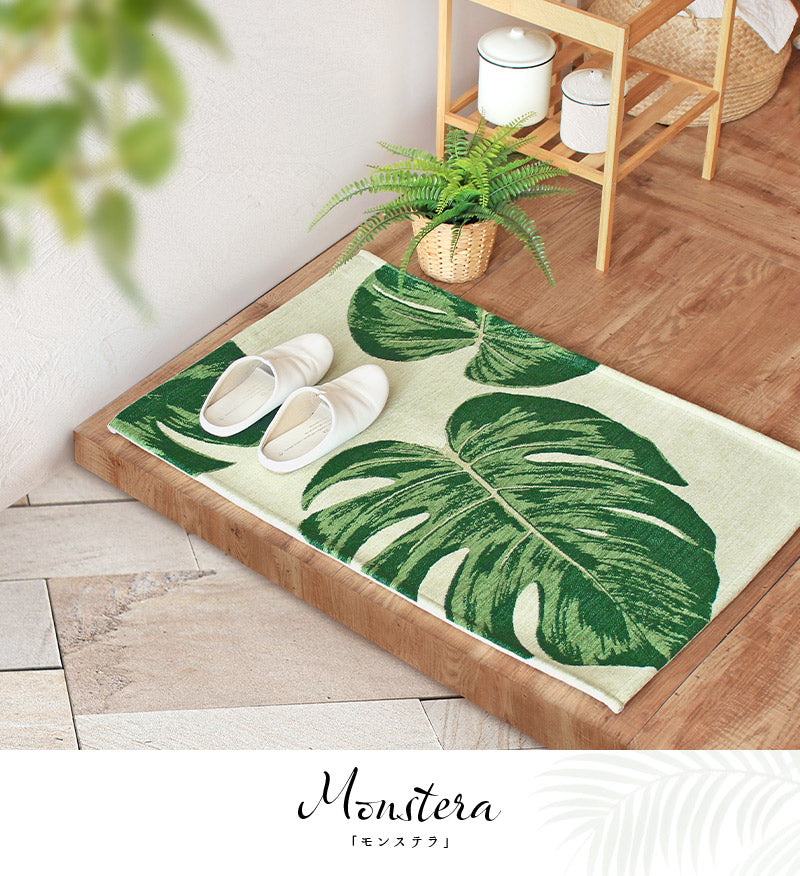 ゴブラン織り 玄関マット ラグ モンステラ