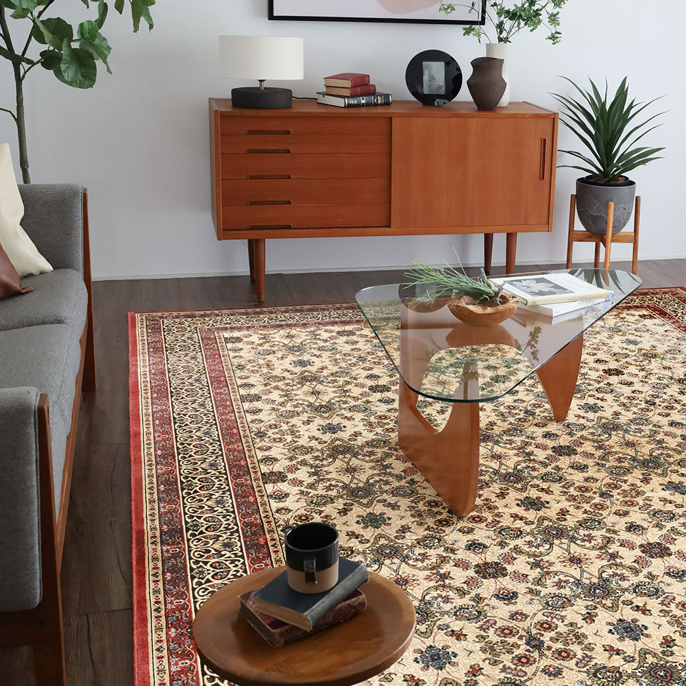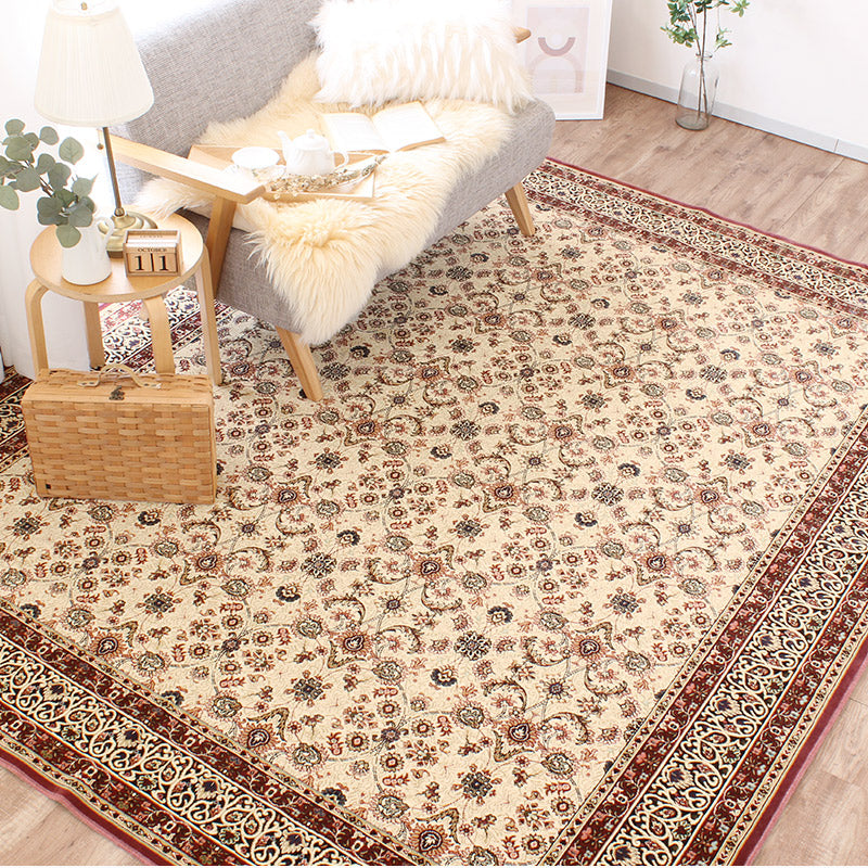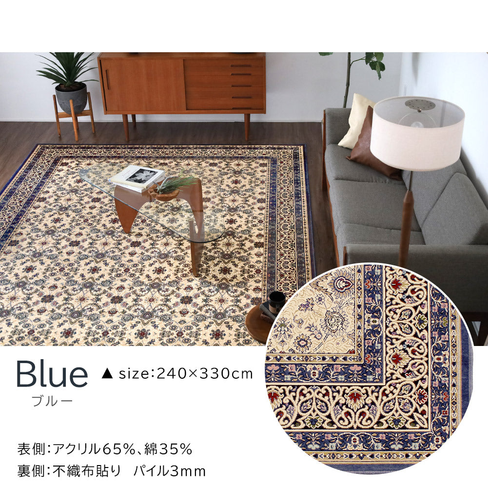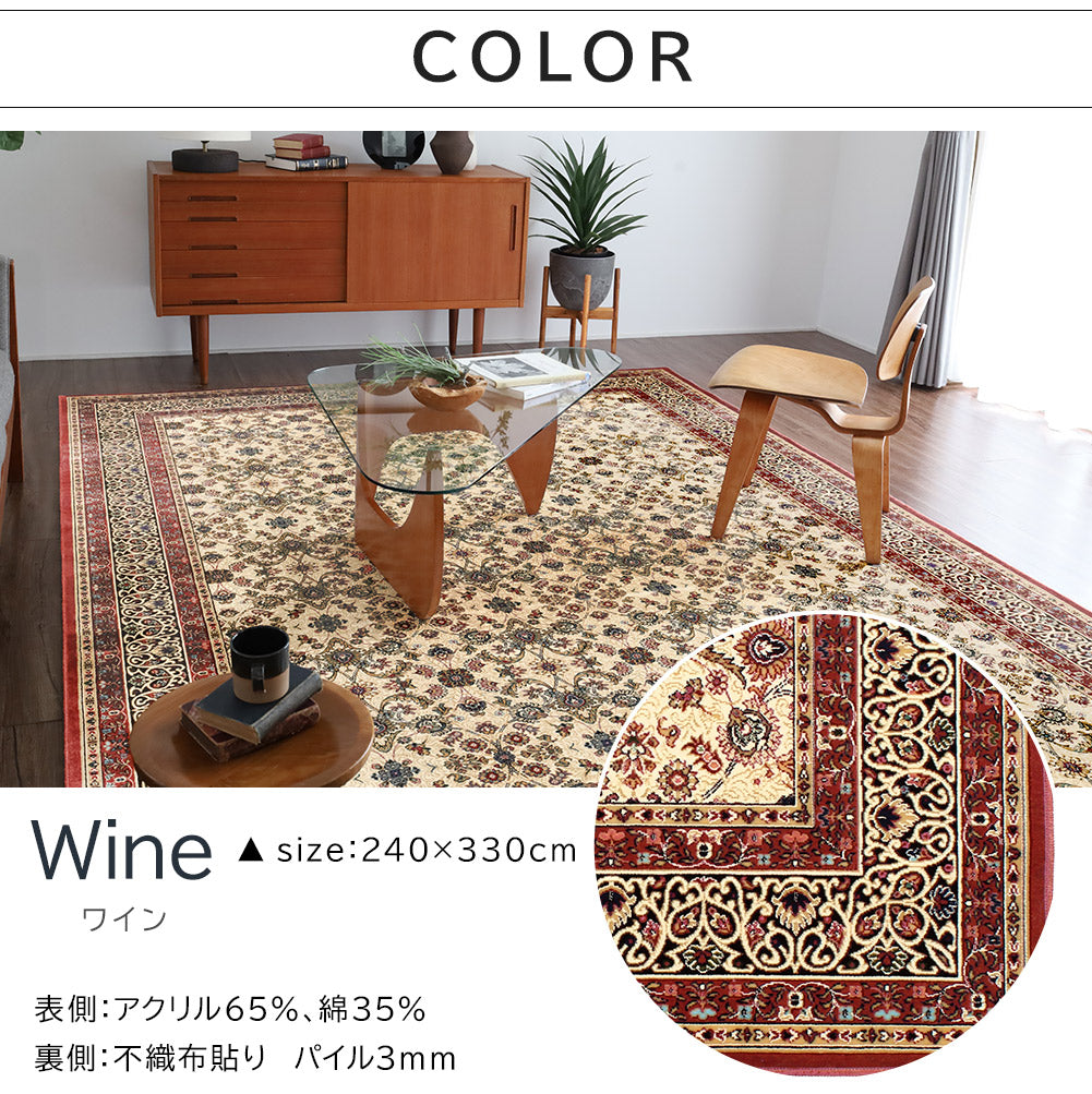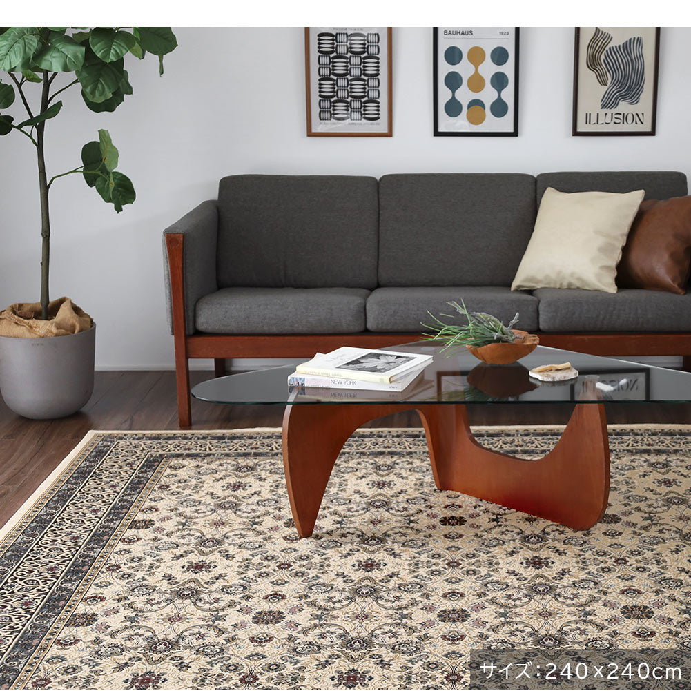 日本国内の老舗メーカーで丁寧につくられた、こだわりのある繊細な織りのアラベスク柄。ヴィンテージラグのような重厚感。お部屋の雰囲気をグッと引き上げてくれます。モケット織りのラグは耐久性バツグン。また、高密度かつ毛足の短いパイルの滑らかな断面で触り心地がよく、軽量で柔らかいので扱いやすいのが特徴です。密度があって毛足が短いとゴミが入り込みにくく汚れに強いのでお手入れ簡単◎サラサラなパイルはへたりにくく夏場の蒸し暑い時期も肌に張り付かず、冬は冷たい床をしっかりカバーしてくれるため、オールシーズン快適にお使いいただけます。機能性に優れたラグで、防炎加工や抗菌、防臭、防ダニ加工が施されています。抗菌防臭加工により、繊維上の菌の増殖を抑制。防ダニ機能付きで、ペットや小さなお子様がいるご家庭でも安心してお使いいただける設計です