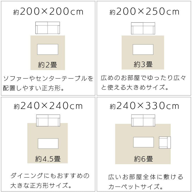 | サイズ | 約200×200cm / 約200×250cm / 約240×240cm / 約240×330cm |