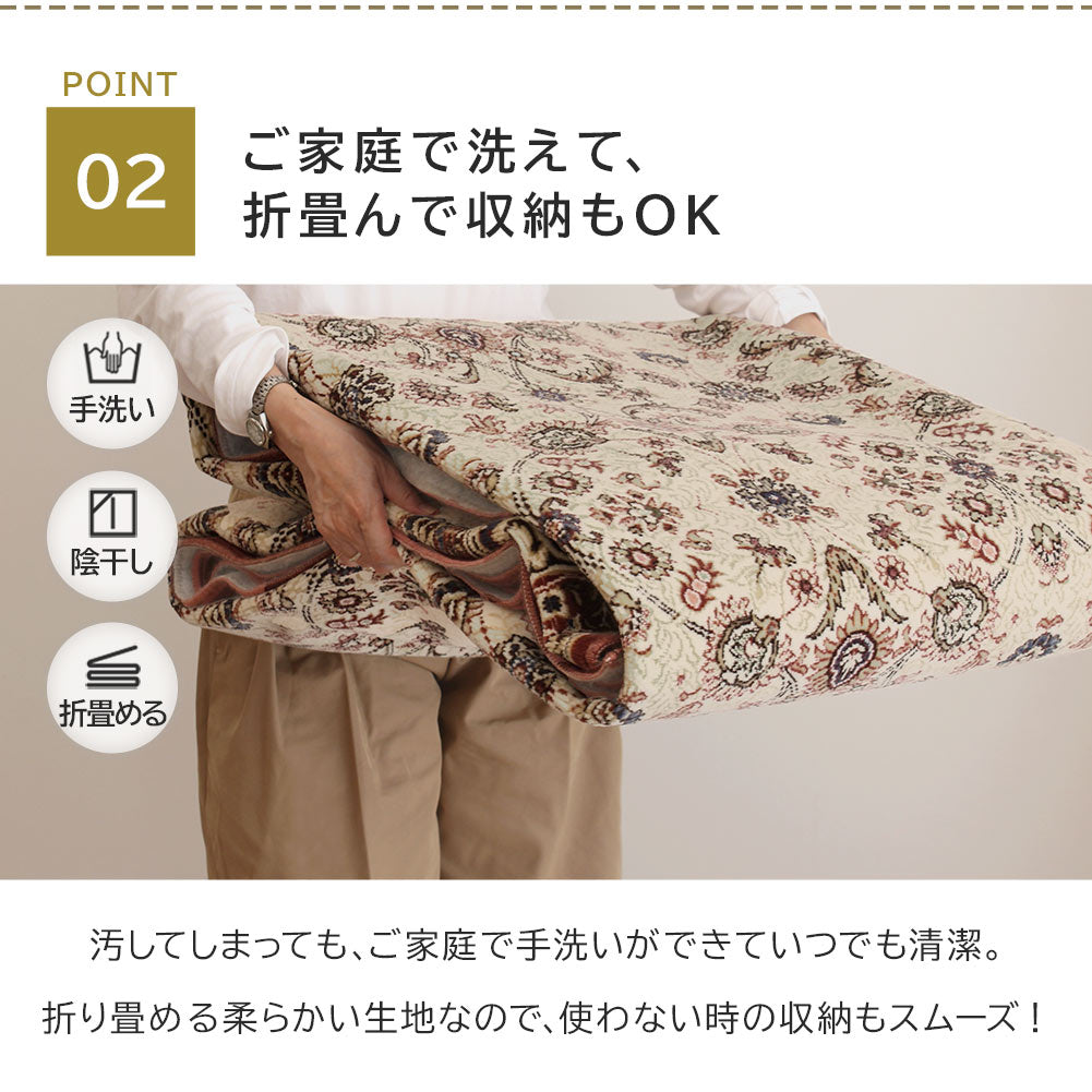 通気性も良く床暖・ホットカーペットの上にも敷けるので、オールシーズン使いやすい◎