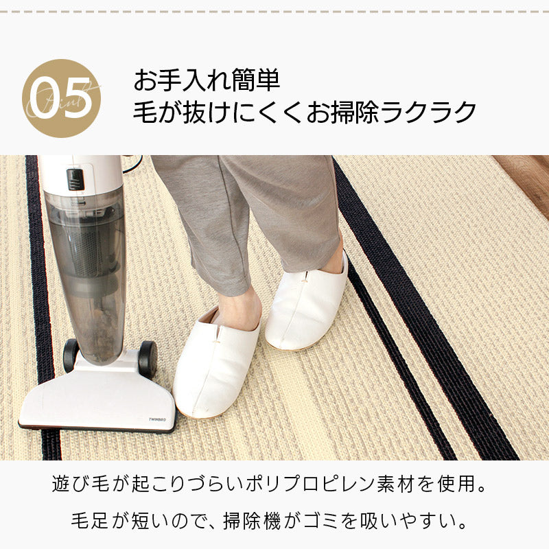 遊び毛が起こりづらいポリプロピレン素材を使用。毛足が短いので、掃除機がゴミを吸いやすい♪