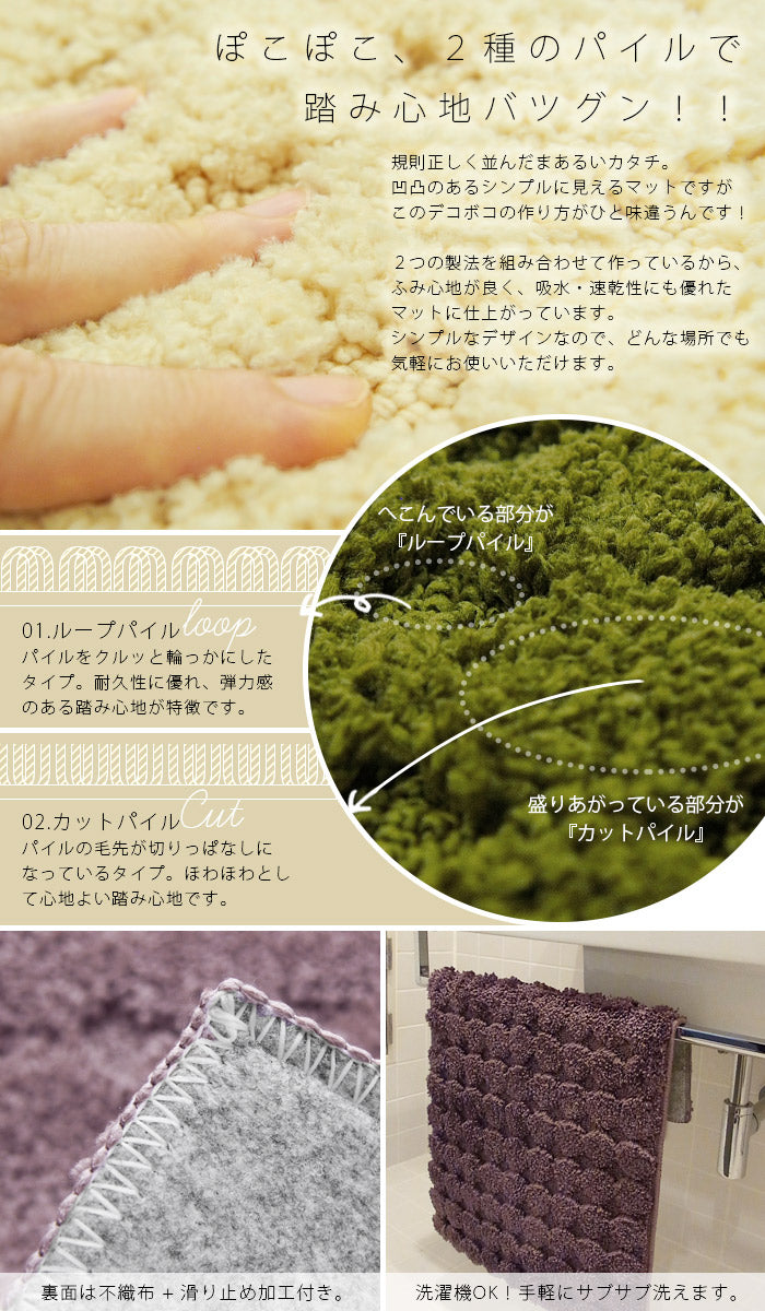 ぽこぽこ、2種のパイルで踏み心地バツグン!